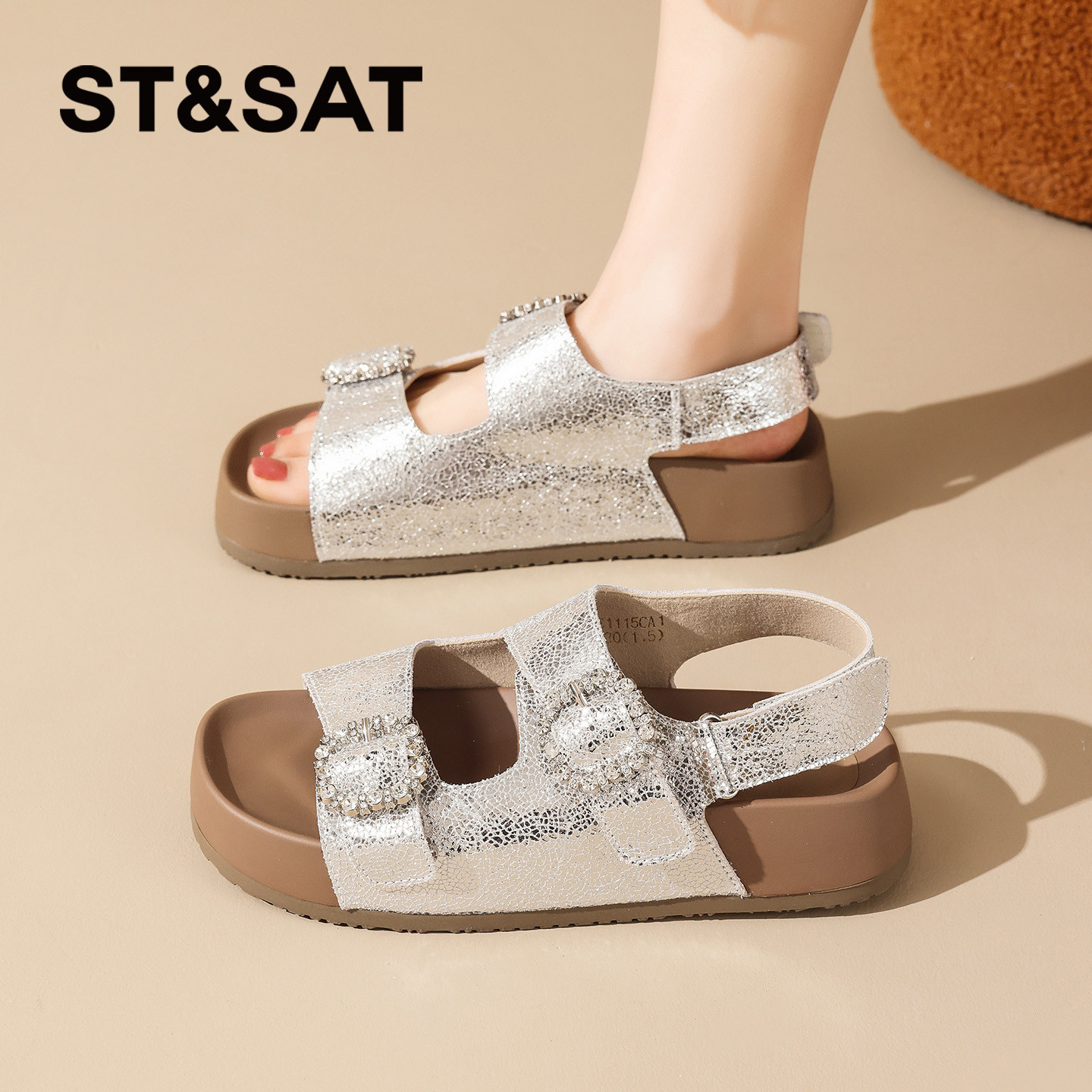 星期六厚底凉鞋女款2026新款夏季双扣带露趾百搭时装鞋轻薄休闲鞋