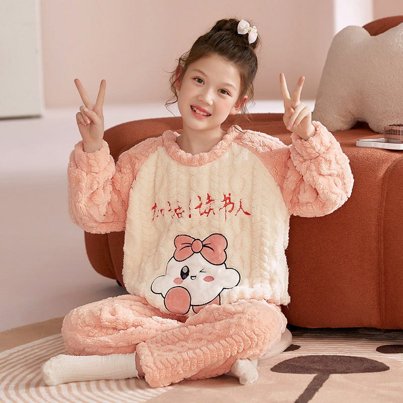 女童睡衣秋冬季法兰绒加厚保暖套装中大童珊瑚绒卡通KT亲子家居服