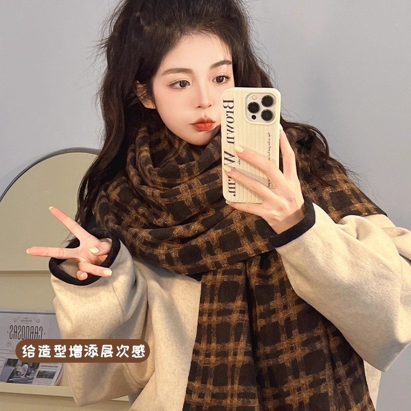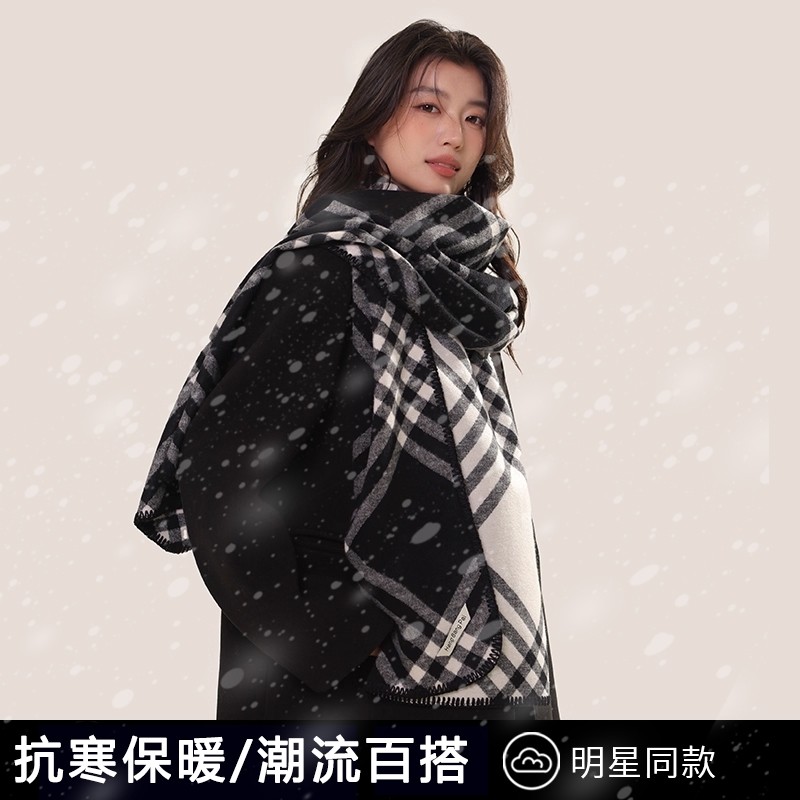 三福格子围巾韩系高级感保暖围脖披肩两用旅游外搭女冬季2025新款