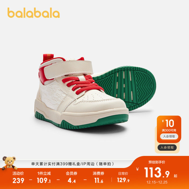 巴拉巴拉童鞋儿童高帮板鞋男女童小白鞋2025春秋季新国潮舒适鞋子