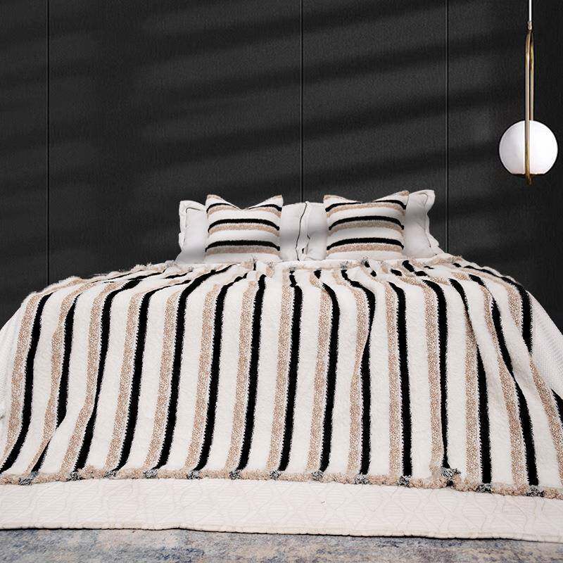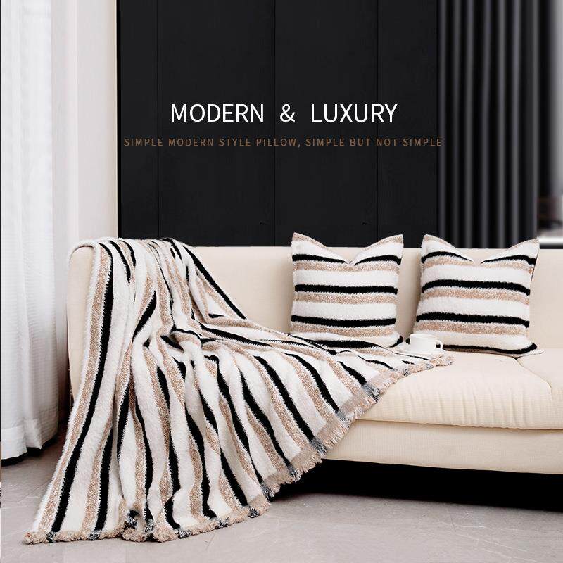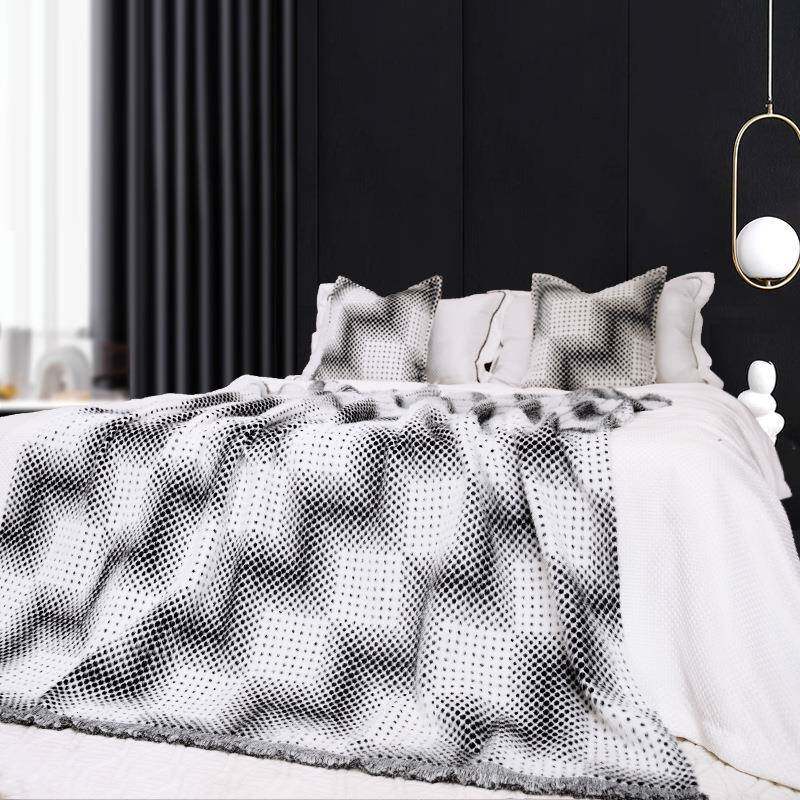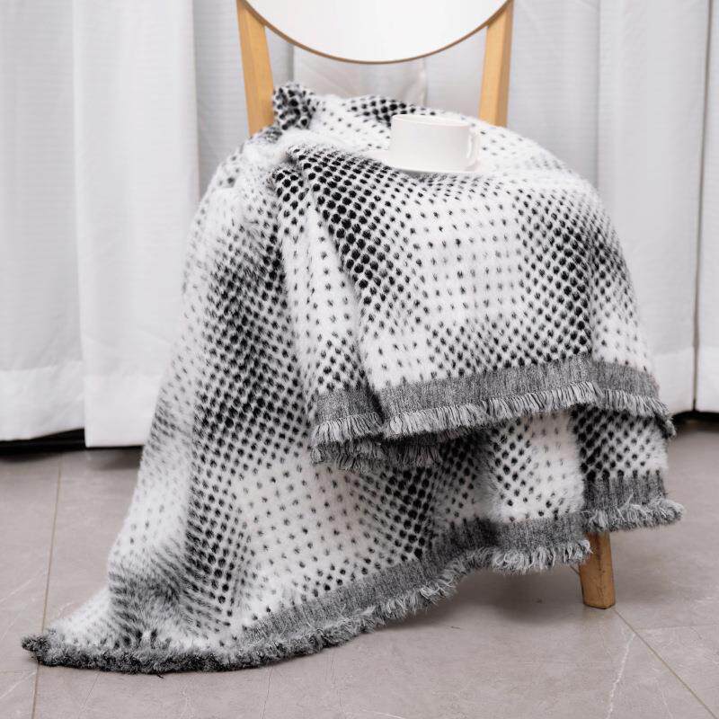 现代简约仿貂绒黑白客厅沙发盖毯毛毯酒店民宿床尾巾毯子秋冬披肩