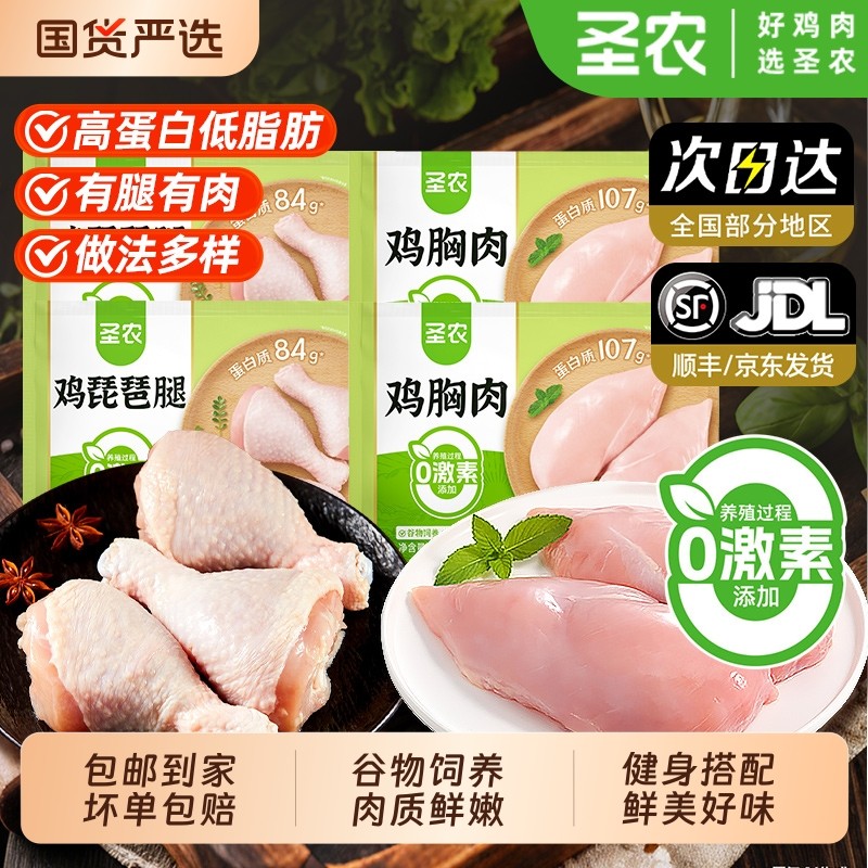 圣农鸡胸肉新鲜鸡腿冷冻健身代餐生鲜现杀非即食去皮琵琶腿鸡脯肉