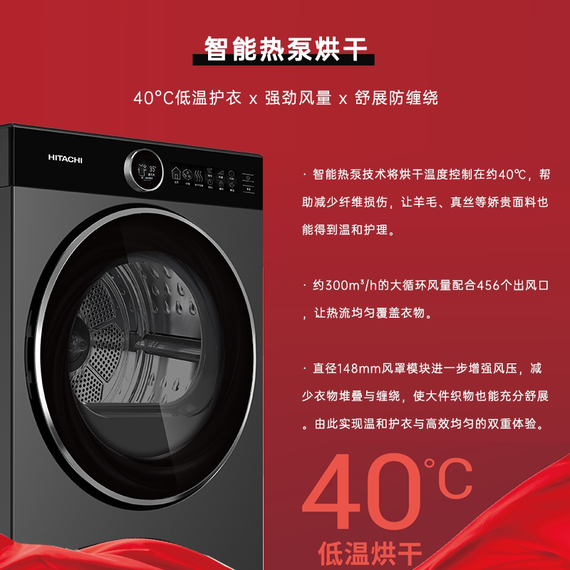 Hitachi/日立10kg烘干机四重烘干除菌净护干衣机新品LTD10HTXVOVG