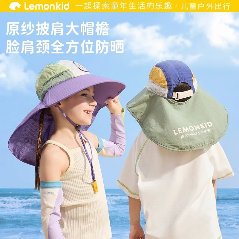 柠檬宝宝儿童防晒帽男生女孩遮阳帽夏季海边沙滩防紫外线太阳帽子