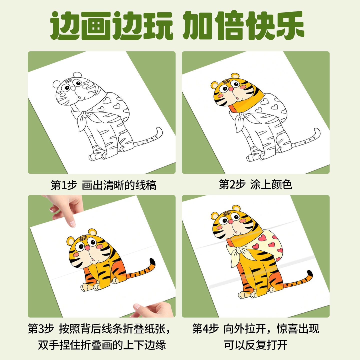 儿童魔法折叠画彩色绘本临摹画册卡通临摹画本开发脑力玩具贴贴画