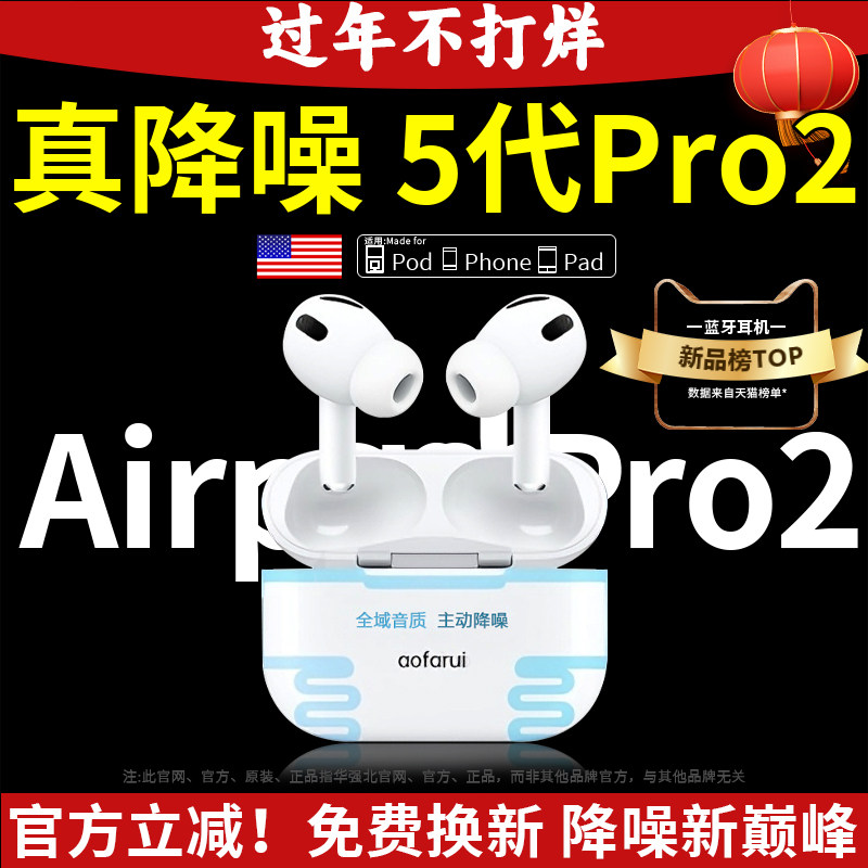 华强北五代pro2无线蓝牙耳机带弹窗苹顶配降噪耳机果安卓官方原装