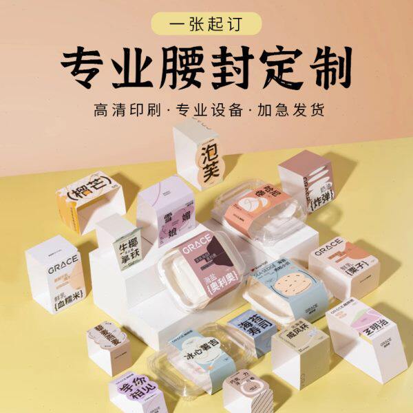 印外卖餐盒封条便当盒盒logo蛋糕订制封甜品封套腰封沙拉订做设计