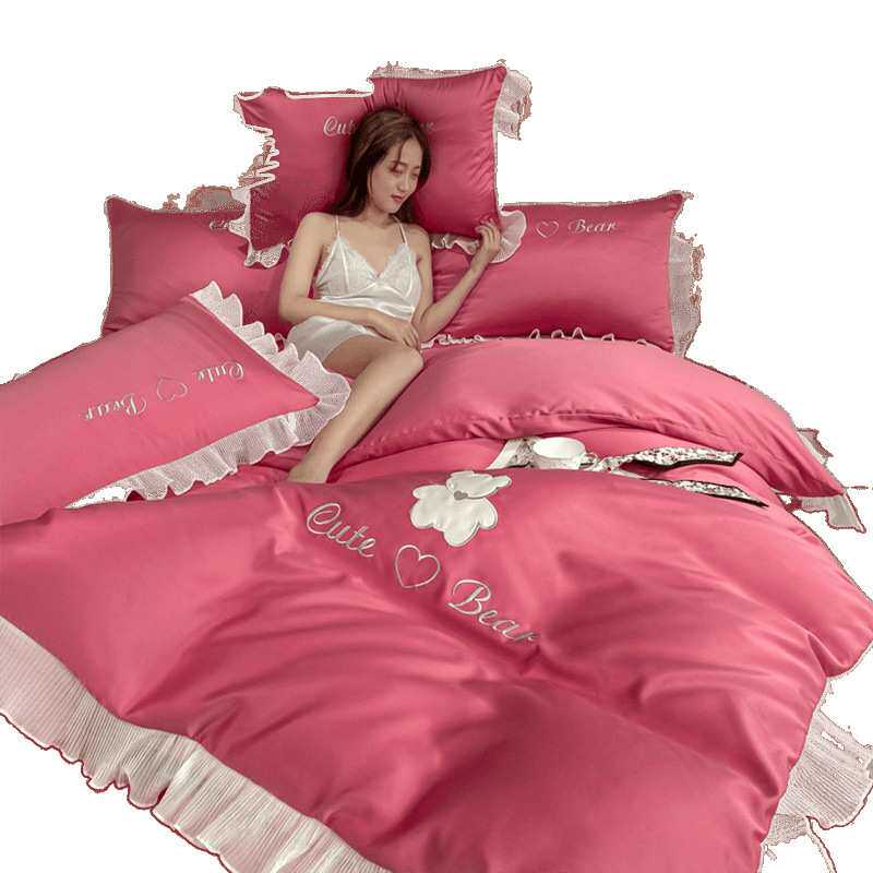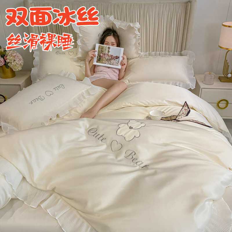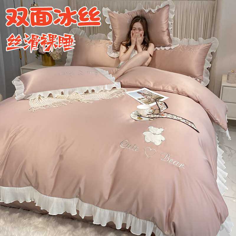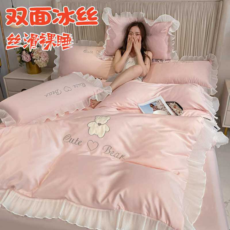 韩范公主风水洗真丝床单四件套夏天冰丝被套高挡单人宿舍三件套4