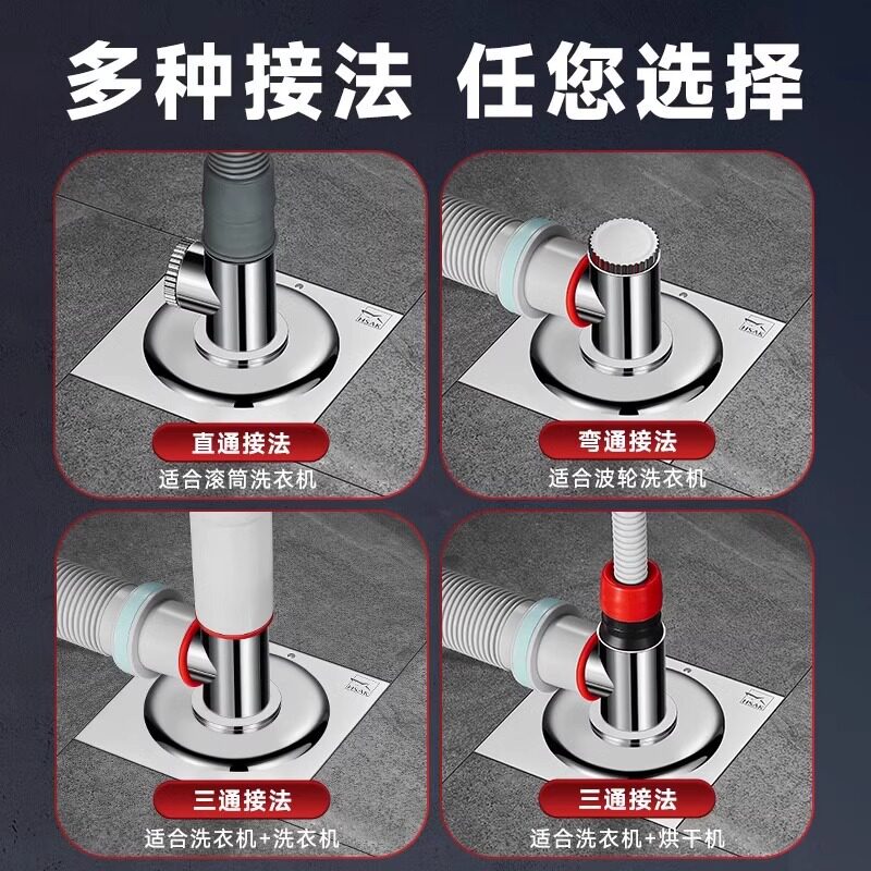 洗衣机地漏专用接头下水排水管道防反溢水二合一三通方形地漏盖子