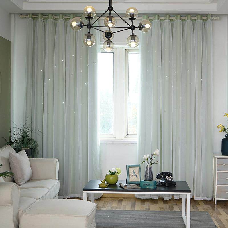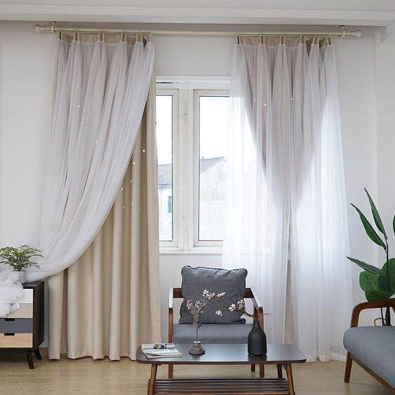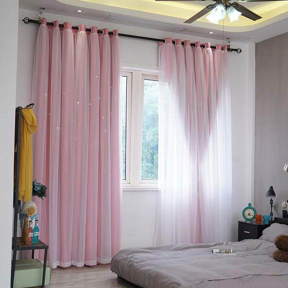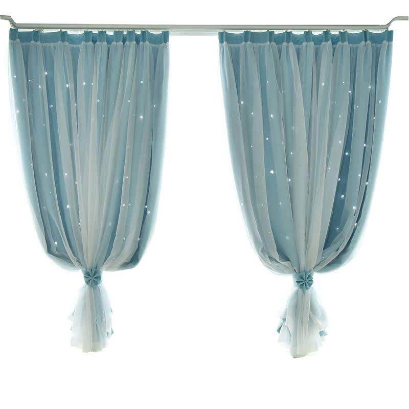 星空帘公主风遮光窗成品飘窗卧室镂空星星双层一体窗帘星空风窗帘