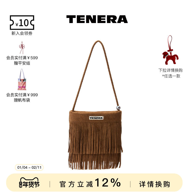TENERA波嬉系列麂皮流苏珍珠小方包腋下包包女款2026早春单肩包