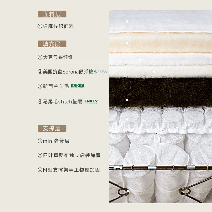 「寝物原始」整床无胶水独立袋装双层弹簧羊毛手工拉扣定制床垫