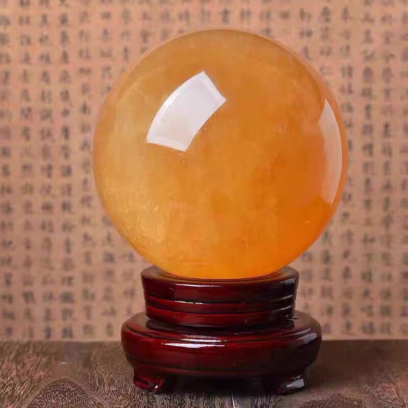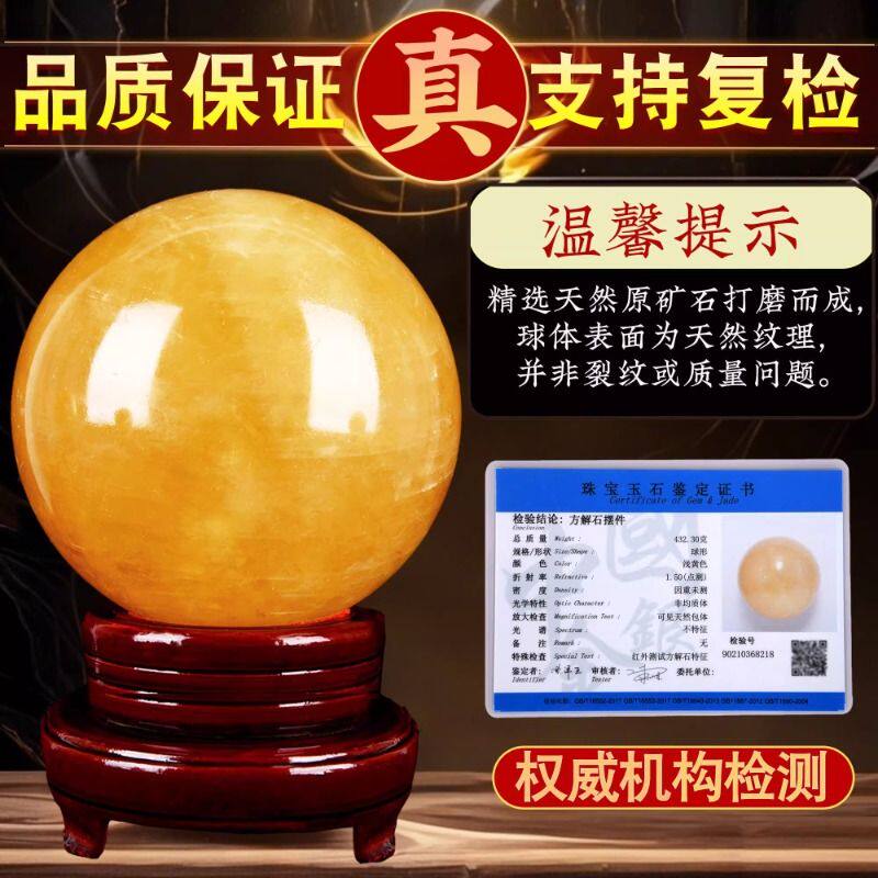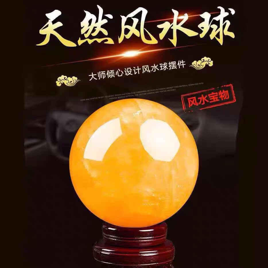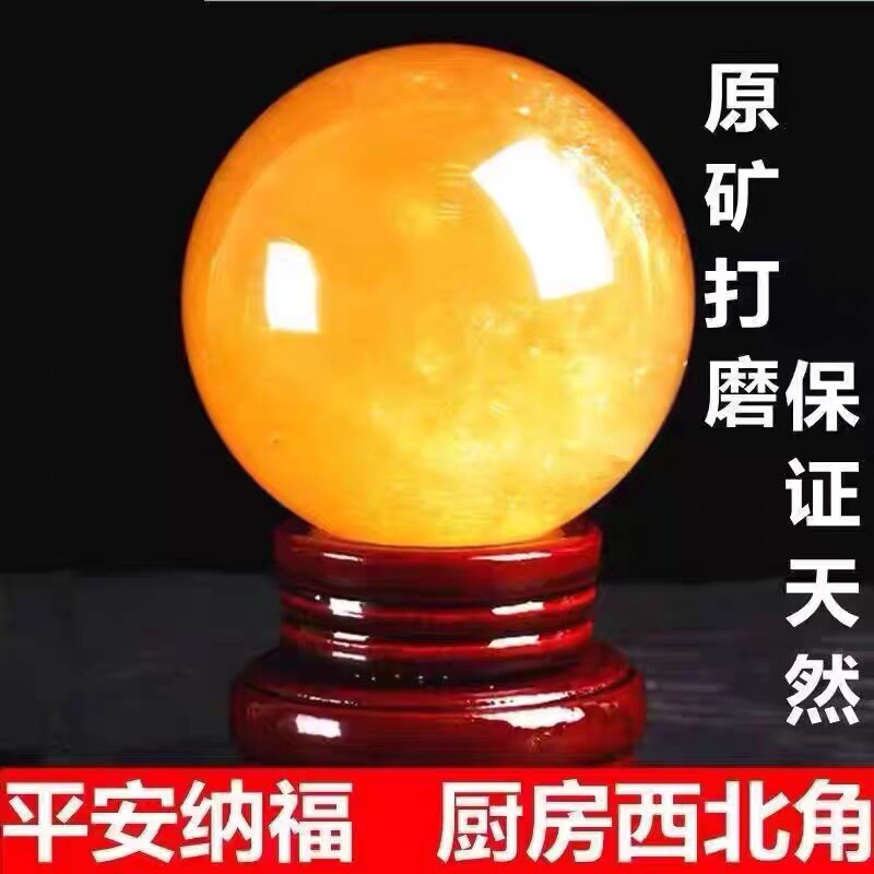 天然黄色真水晶球原矿厨房客厅装饰办公室招财高档风水转运球摆件