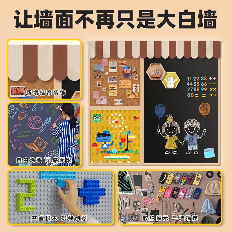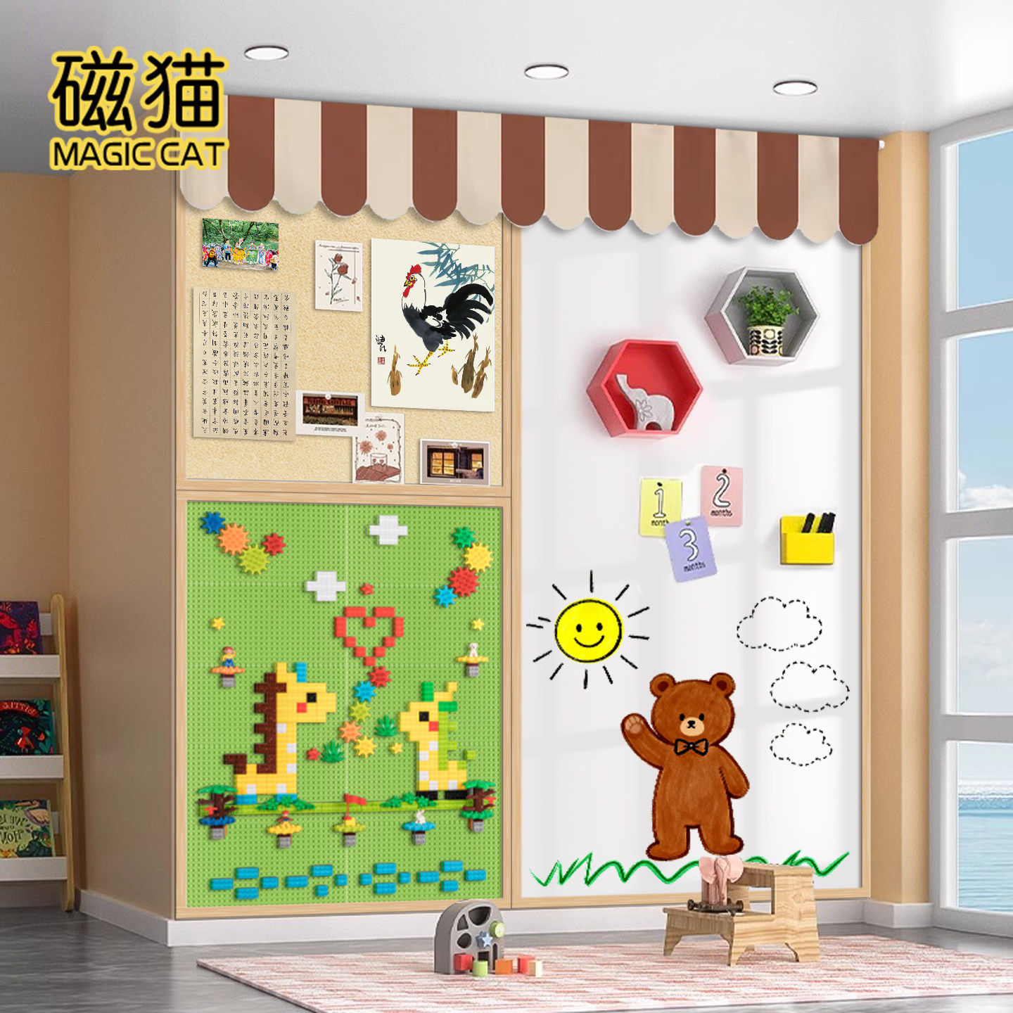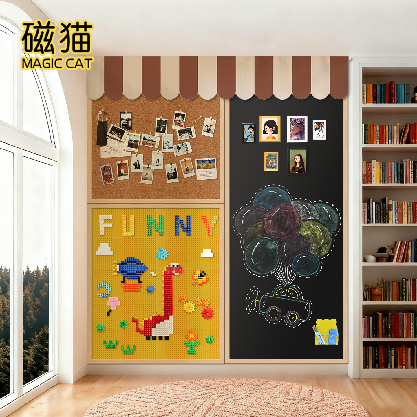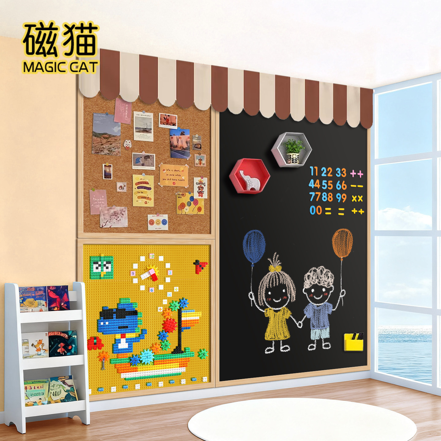 磁猫实木边框屋檐彩旗三合一双层磁吸珐琅白板墙积木墙毛毡墙儿童涂鸦贴家用学校幼儿园黑板大颗粒照片展示墙