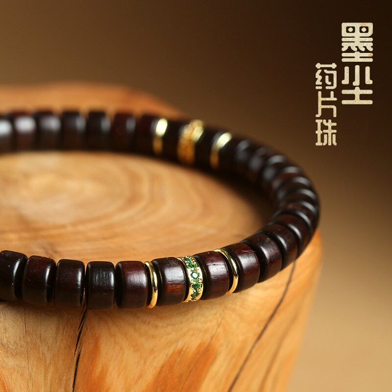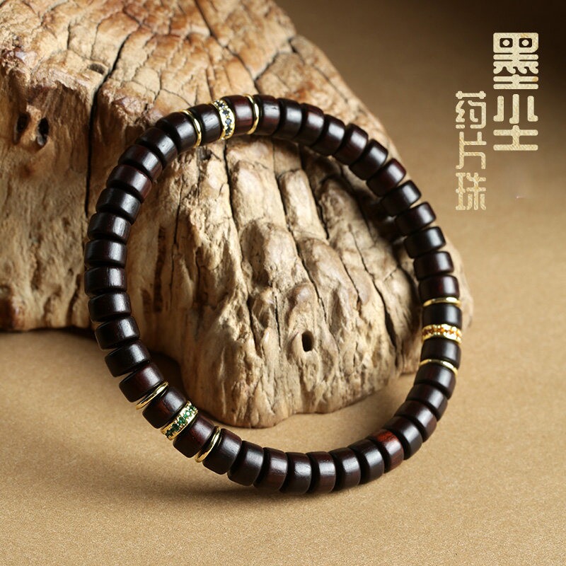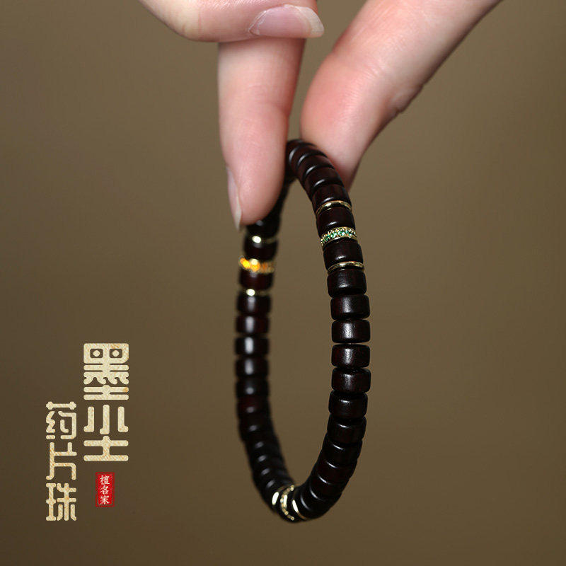 小叶紫檀木直切药片珠手串锆石彩钻手链文玩佛珠念珠原创国潮首饰