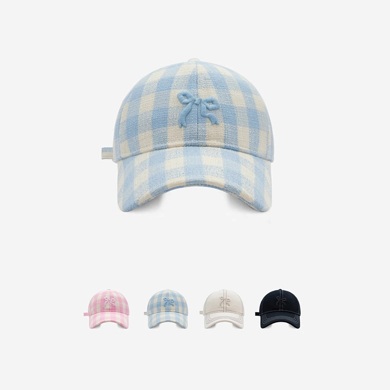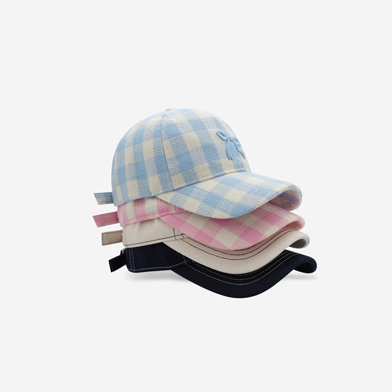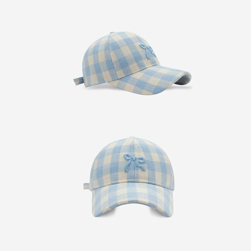 Classy key新加坡设计师联名款格子蝴蝶结刺绣棒球帽子防晒鸭舌帽