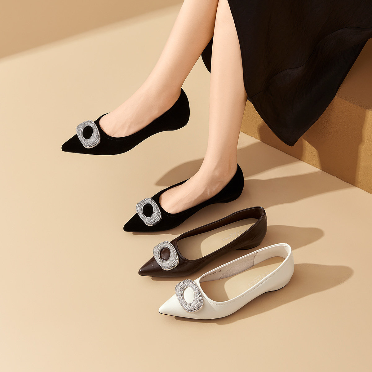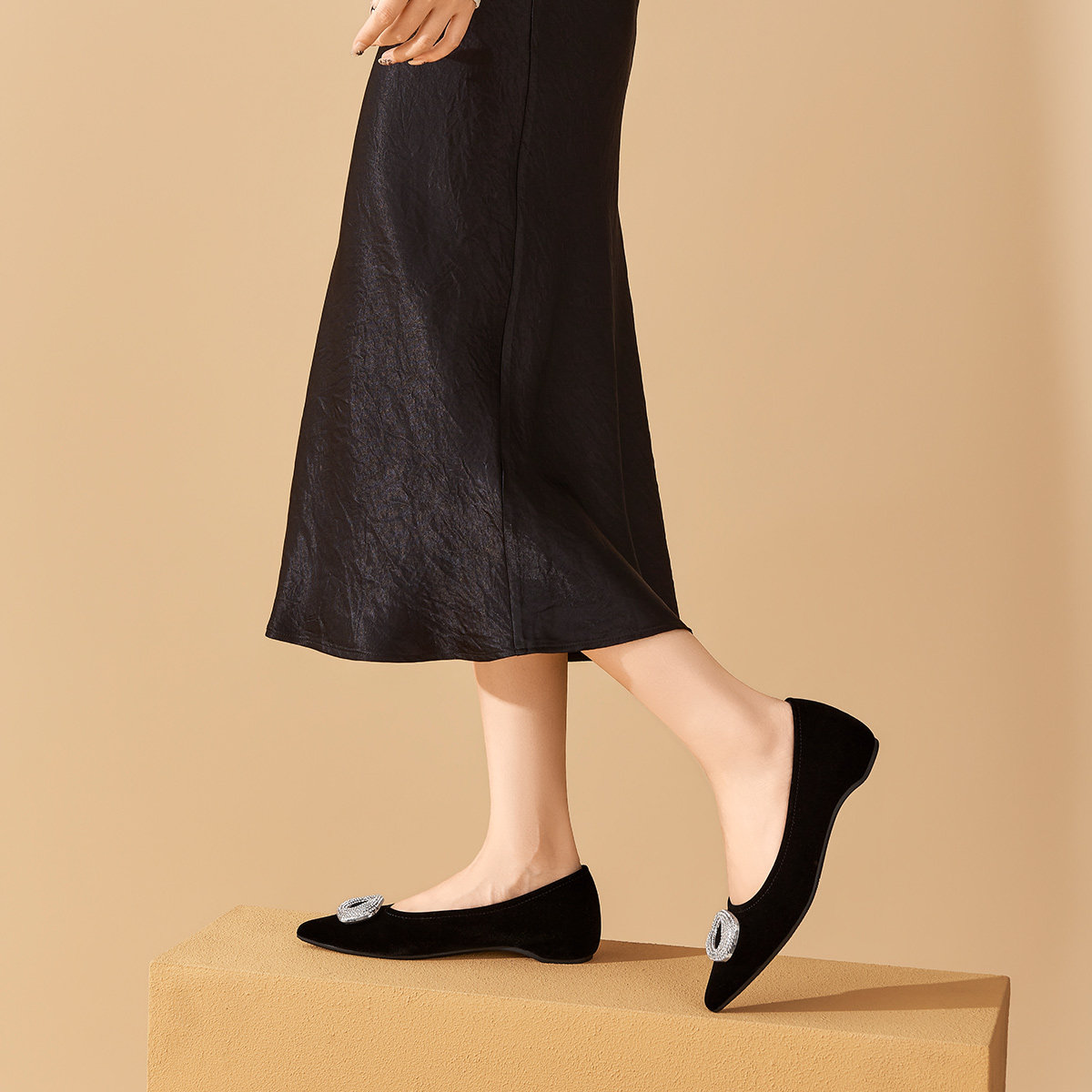 戈美其法式平底单鞋2025新款百搭尖头软底一脚蹬通勤浅口妈妈鞋
