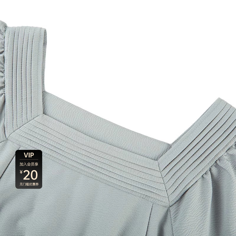 方领连衣裙 压褶收腰 泡泡袖