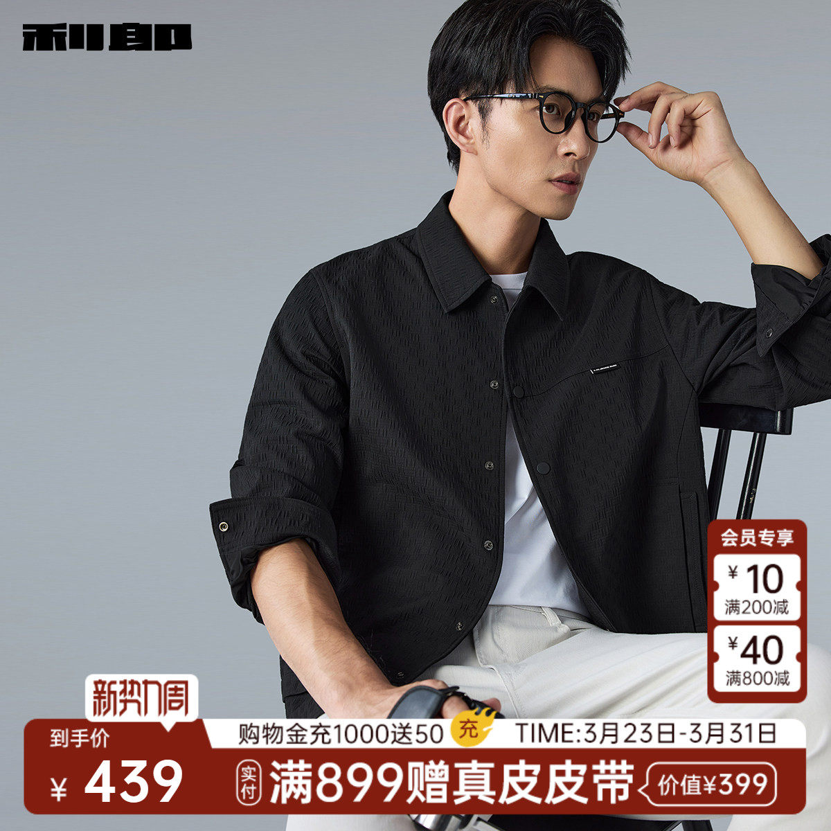 【肌理提花】利郎官方夹克男翻领2026春秋款新款短款休闲男装外套