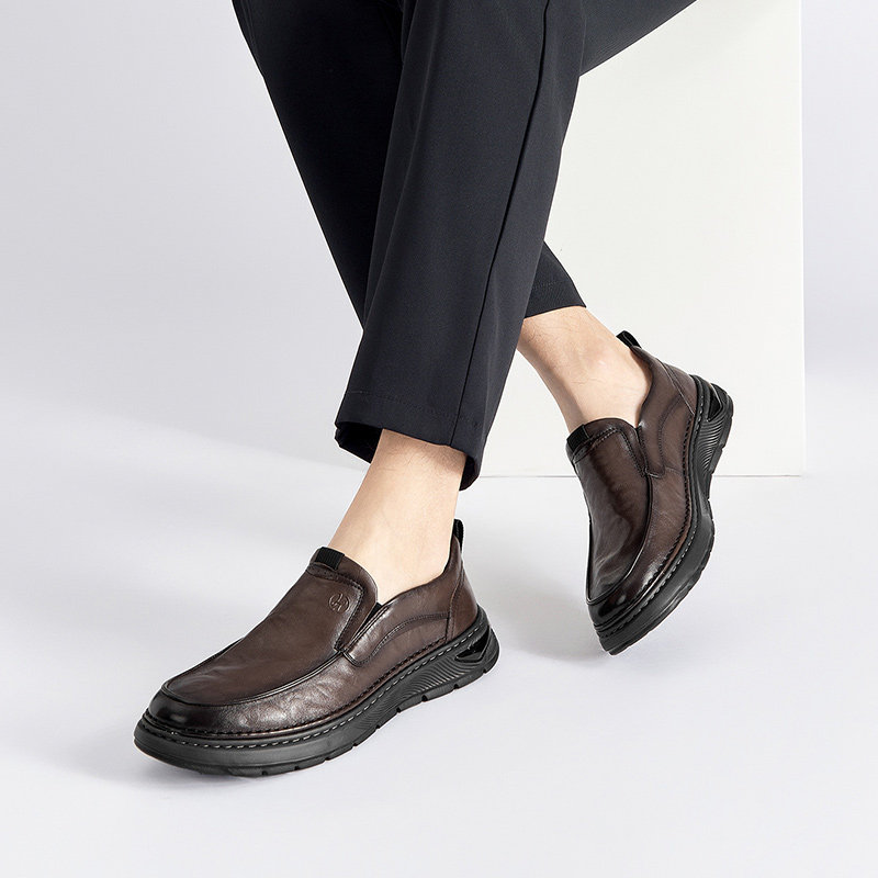 奥康男鞋秋冬季商务休闲皮鞋真皮一脚蹬套脚乐福鞋舒适耐磨爸爸鞋