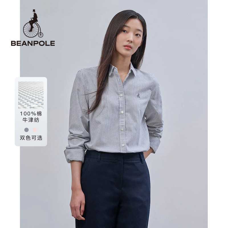 【100%棉】BEANPOLE滨波女士商务牛津纺条纹时尚翻领休闲简约衬衫