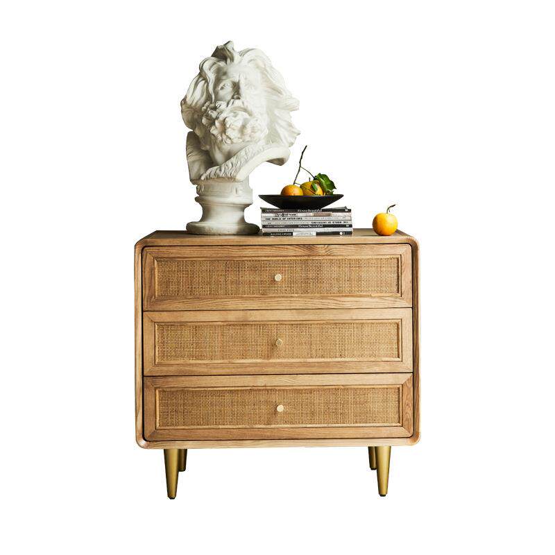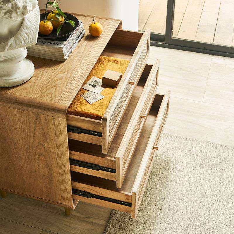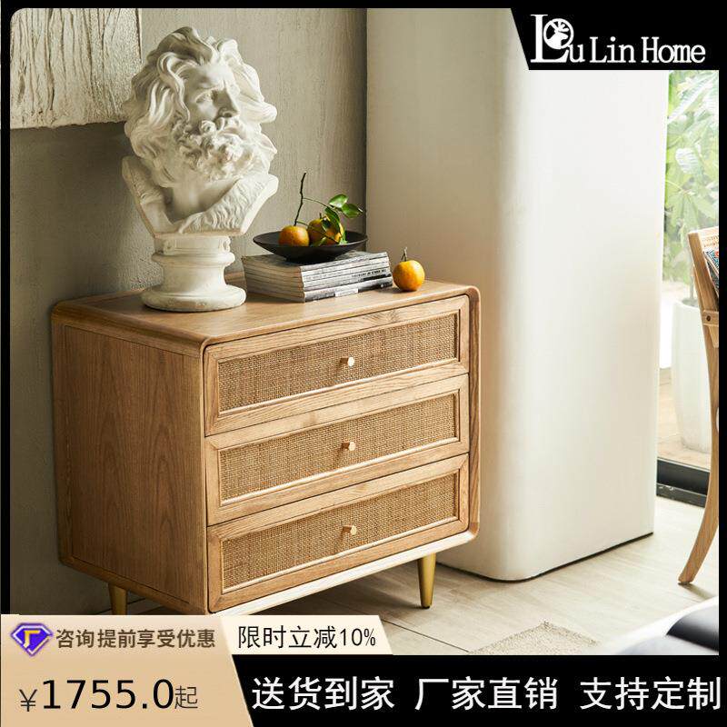 北欧实木三斗柜简约现代储物柜卧室多功能床头柜藤编收纳柜子民宿