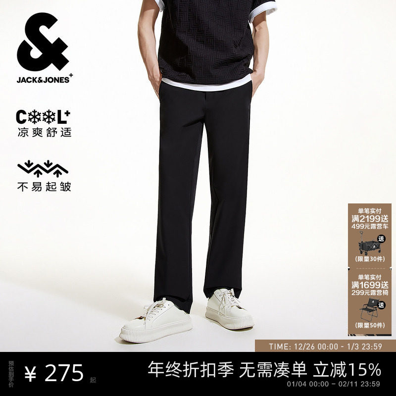 杰克琼斯男装秋季休闲冰丝凉感防泼水通勤直筒西裤长裤子秋季男款