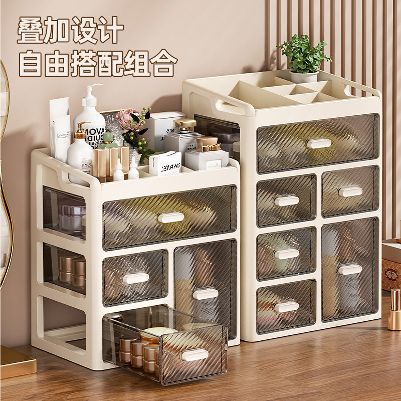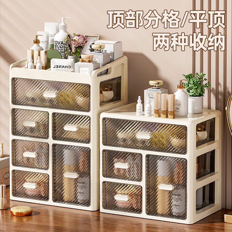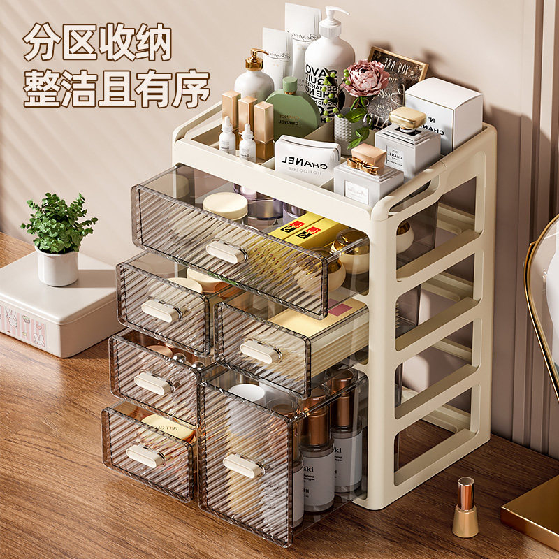 化妆品收纳盒新款大容量桌面防尘口红护肤梳妆台高级抽屉式置物架
