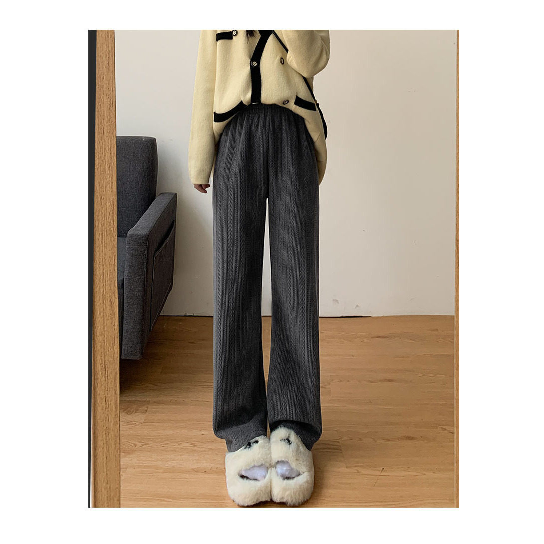 糯米裤女羊羔绒垂坠感软糯加绒加厚秋冬韩系慵懒松弛感阔腿裤TB