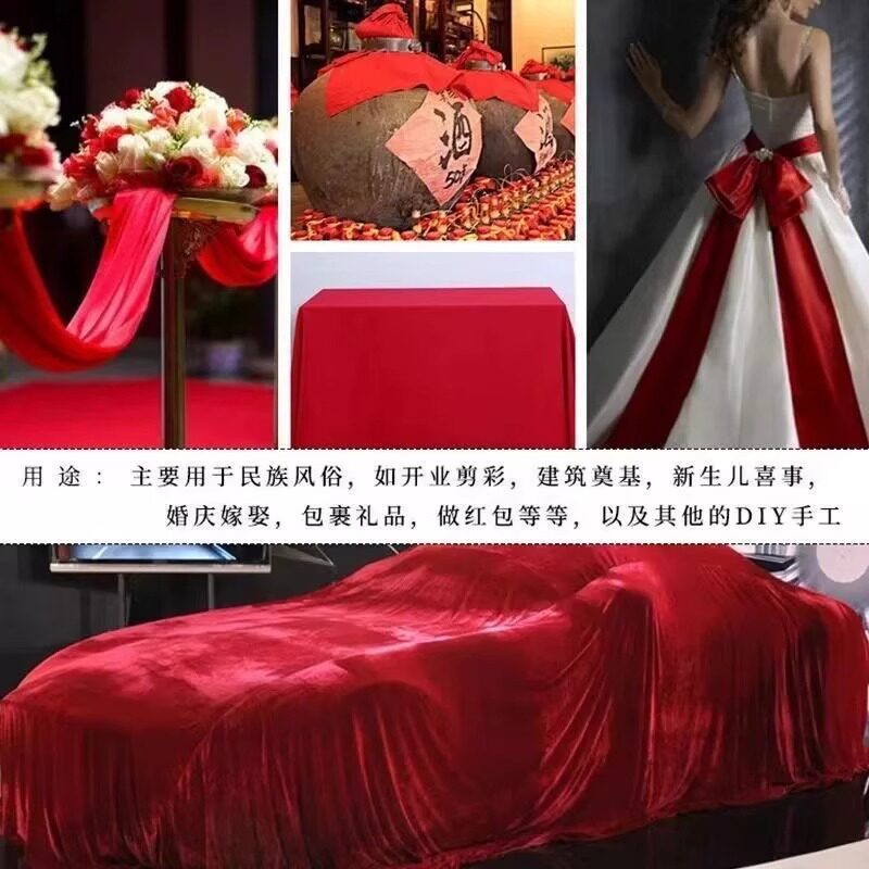 仿纯棉大红布料涤3尺3喜事结婚红布佛台布红绸缎布中国风开业实惠