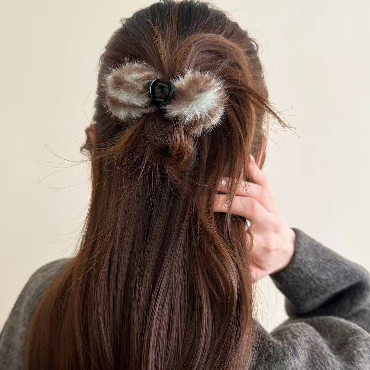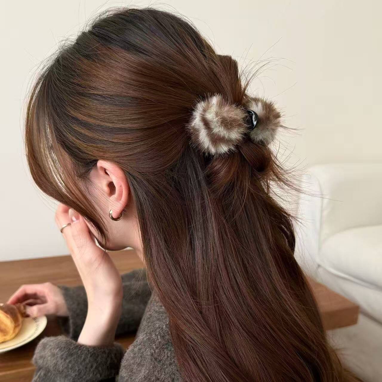秋冬可爱毛球抓夹女高级感2025新款后脑勺小号发夹半扎鲨鱼夹头饰