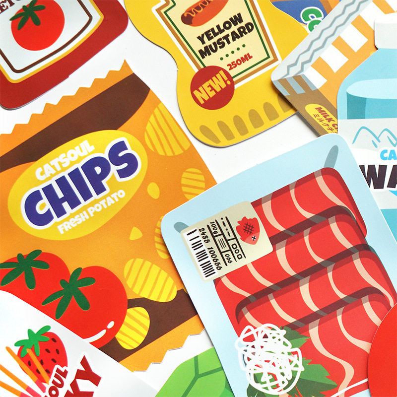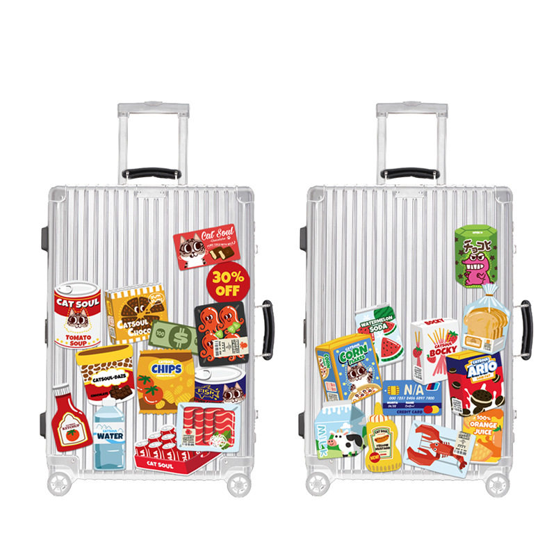 原创可爱少女卡通零食包装行李箱贴纸笔记本电脑拉杆箱吉他滑板电动车摩托车头盔防水不留胶水杯ins贴画24枚