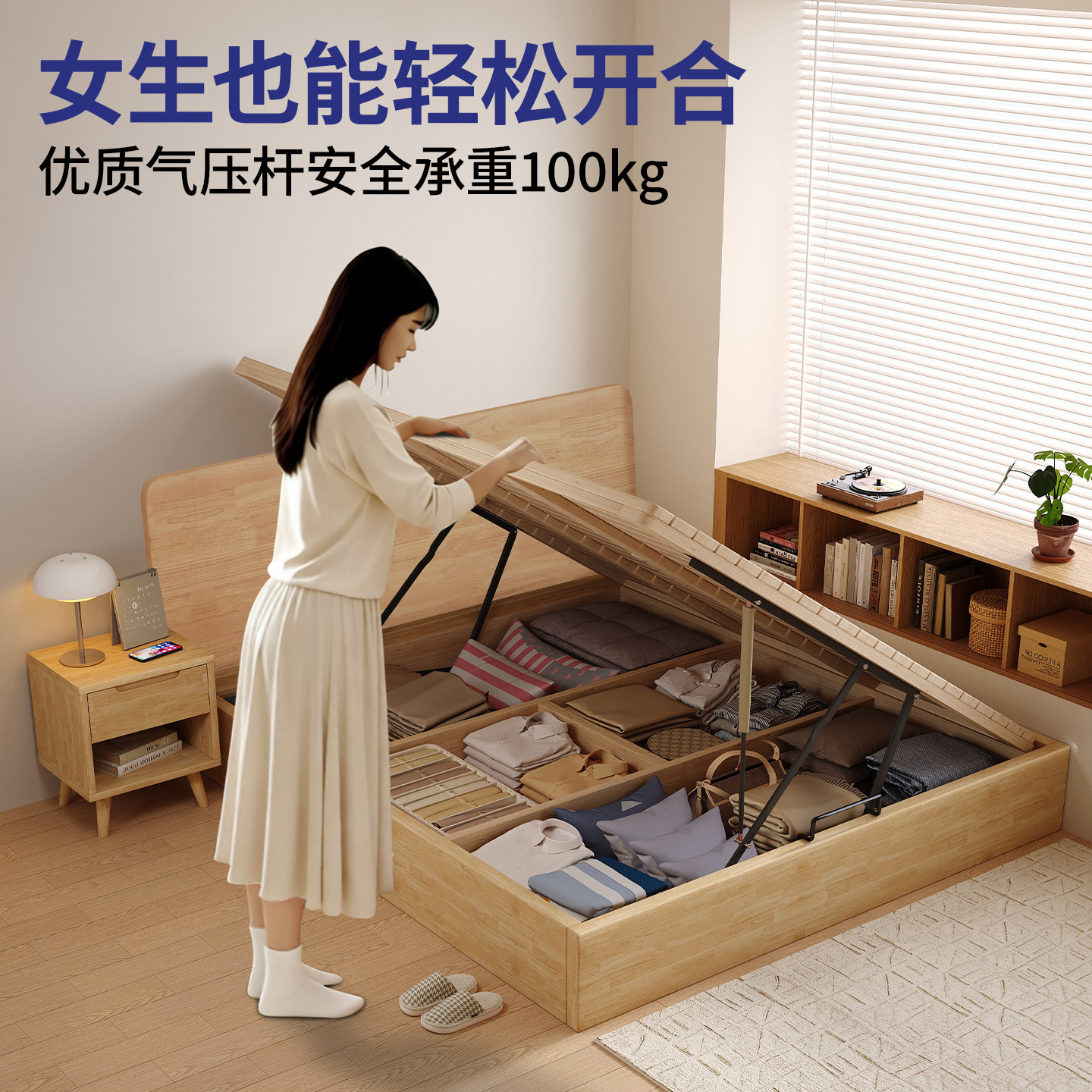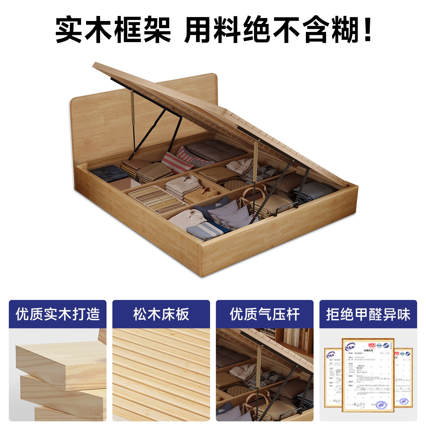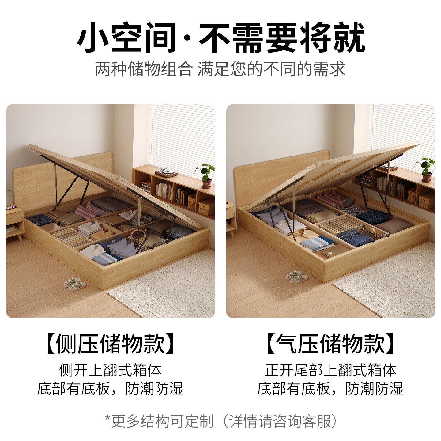 小户型实木超薄床头原木色收纳床侧开气压榻榻米静音储物床可定制