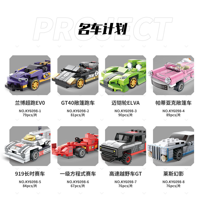 中国汽车拼装积木小型赛车跑车模型男孩益智6-12儿童玩具男越野车