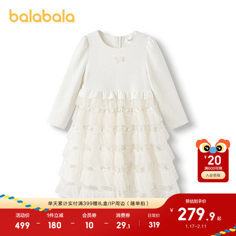 巴拉巴拉balaOne童装女公主裙2025秋冬新款儿童连衣裙针织网纱裙