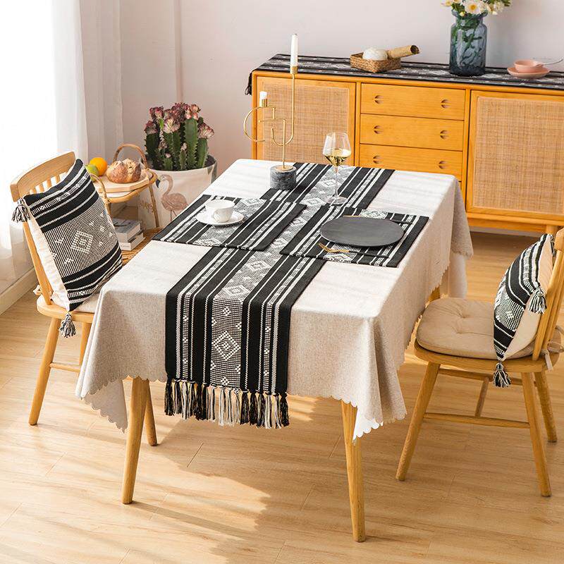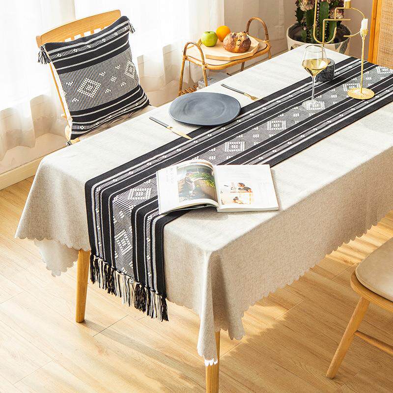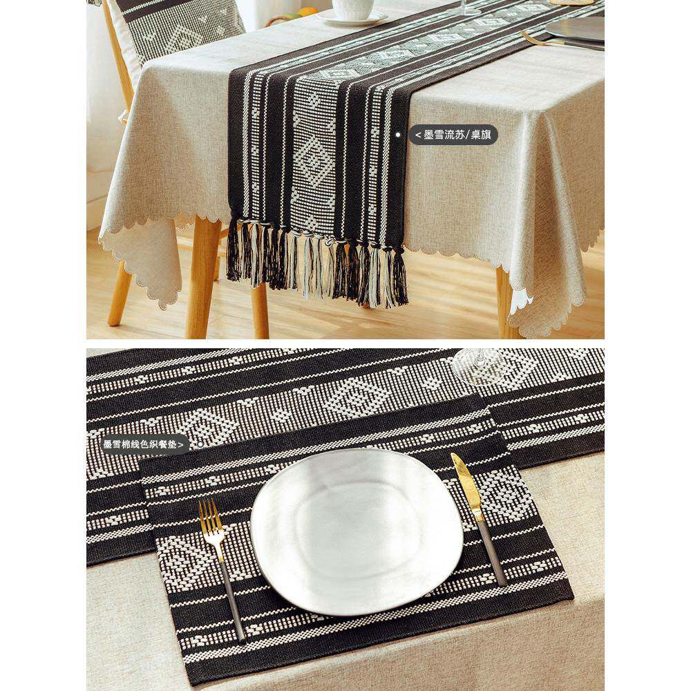 墨雪餐垫桌旗棉线色织工艺餐桌桌旗轻奢长条桌布茶几盖巾茶旗床旗