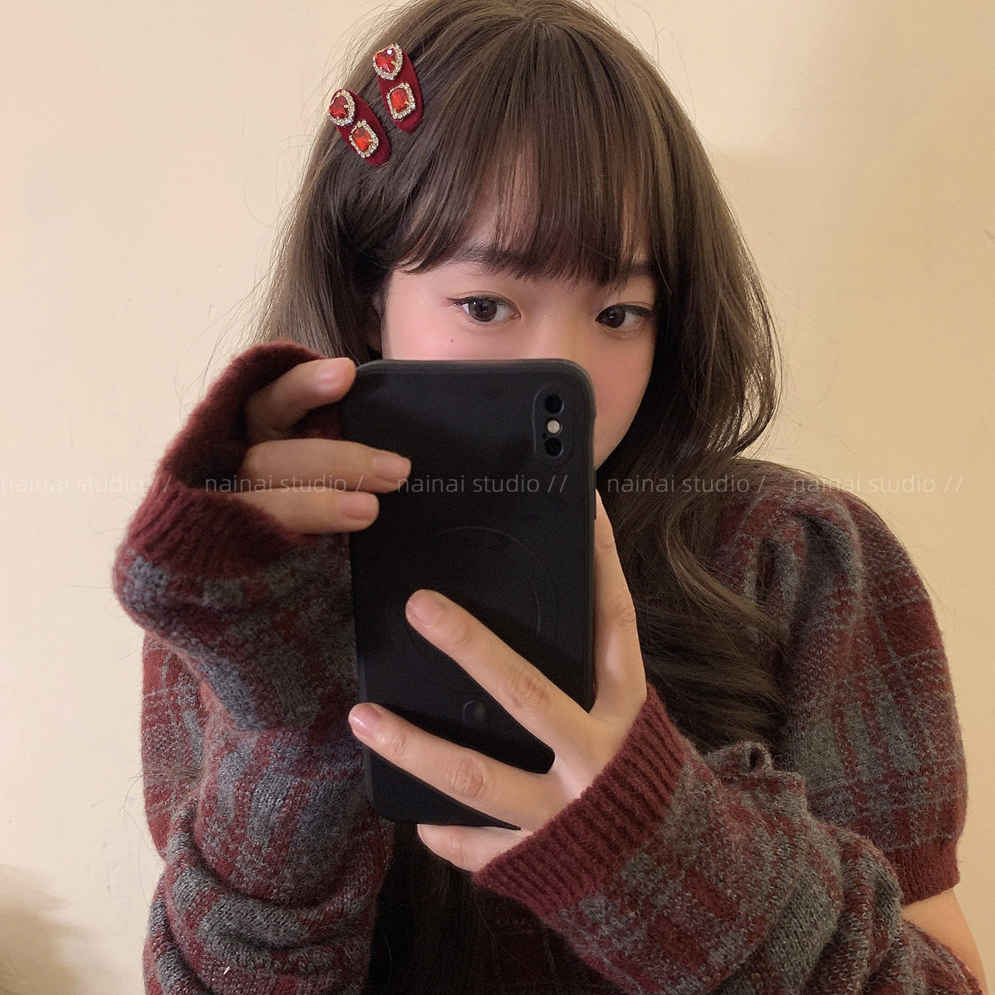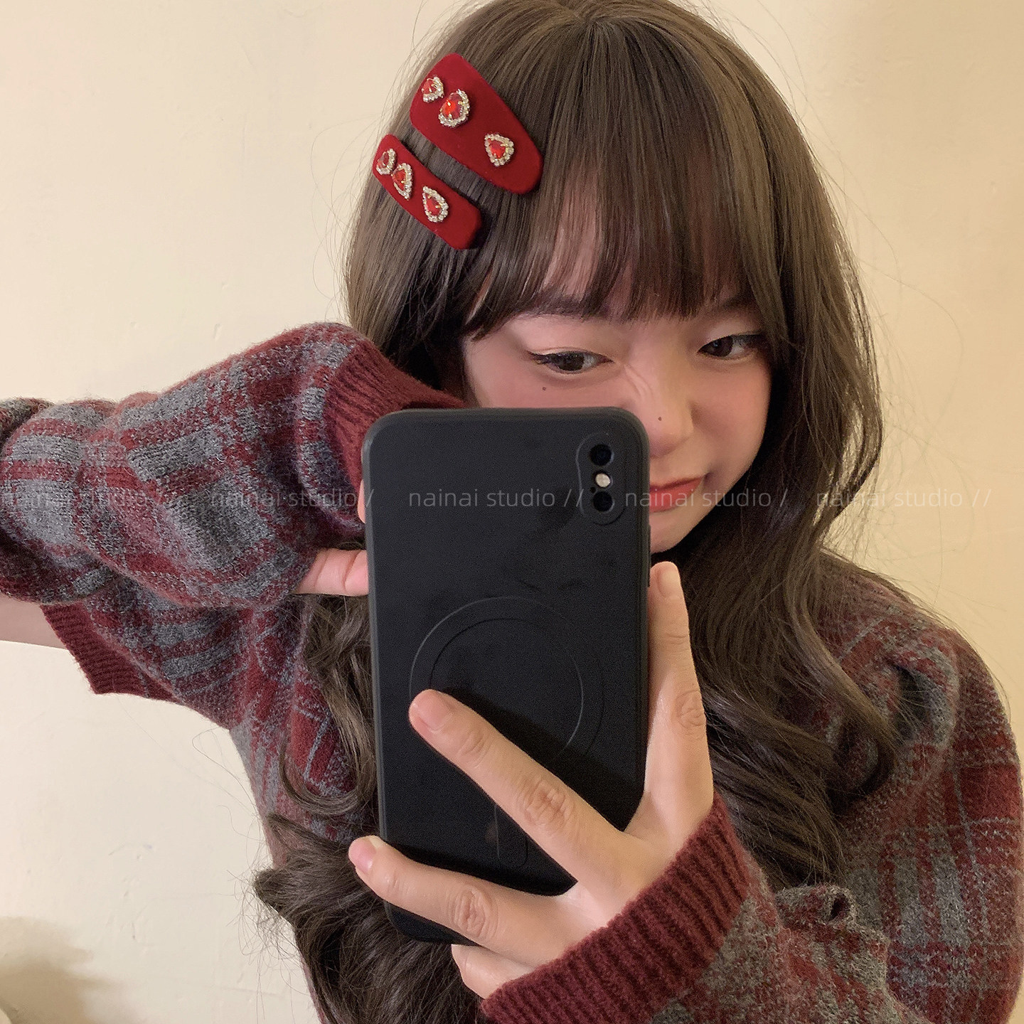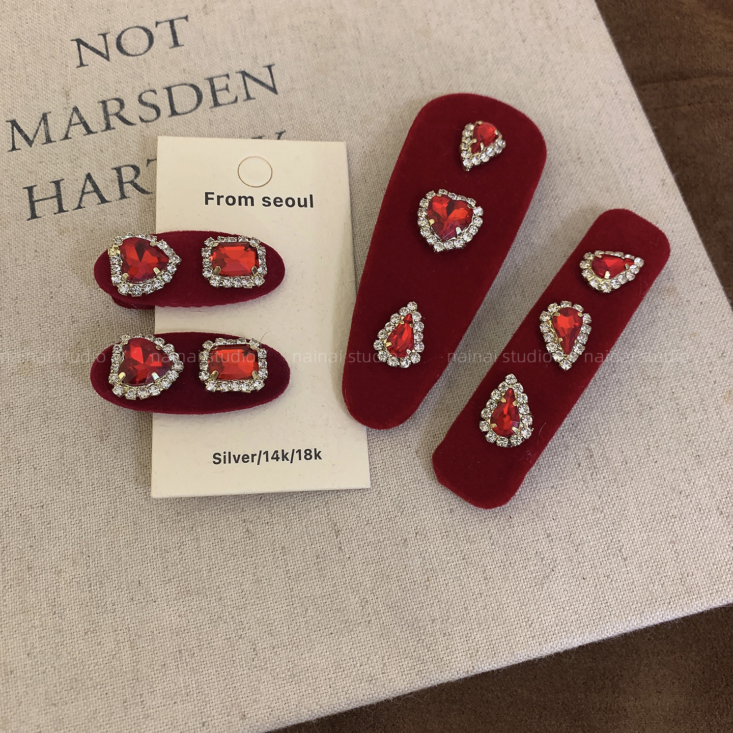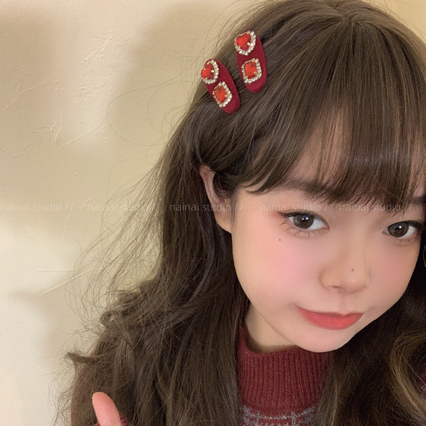 红色爱心闪钻发夹~新年款丝绒复古氛围感侧边夹刘海夹宫廷风发饰A