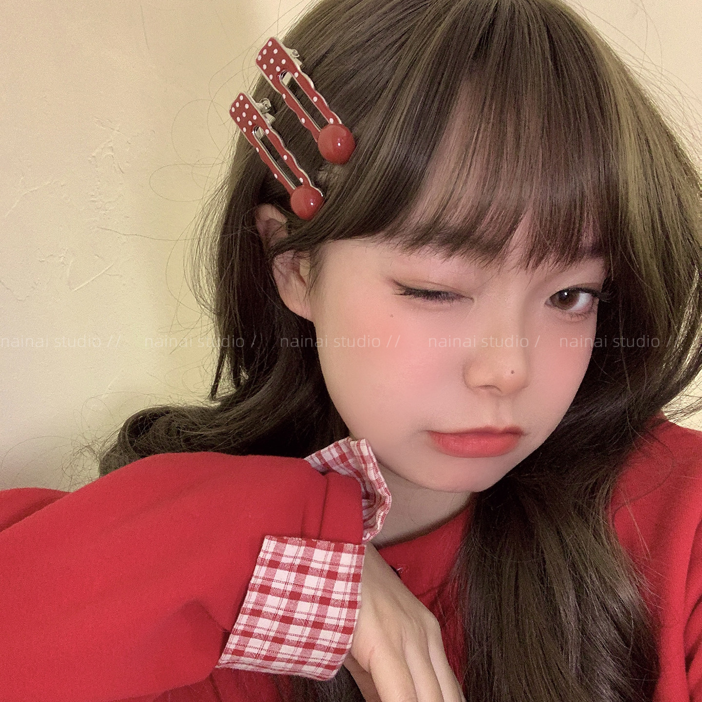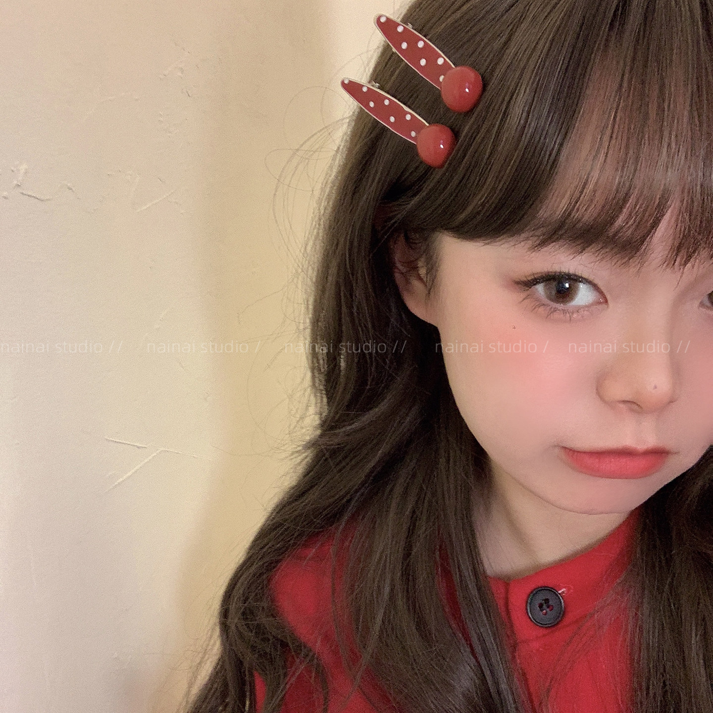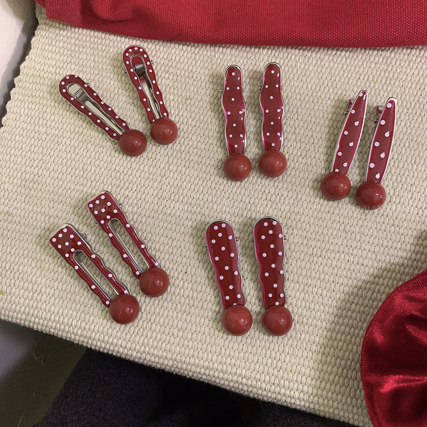 红色波点发夹2只装~2026新款气质侧边夹刘海夹发饰鸭嘴夹子气质女