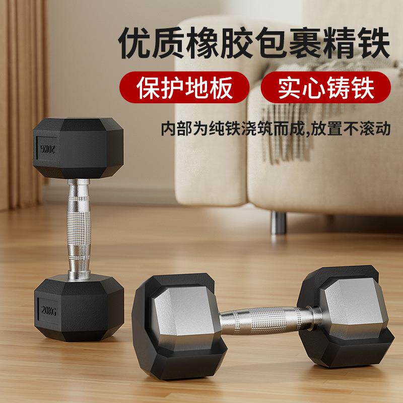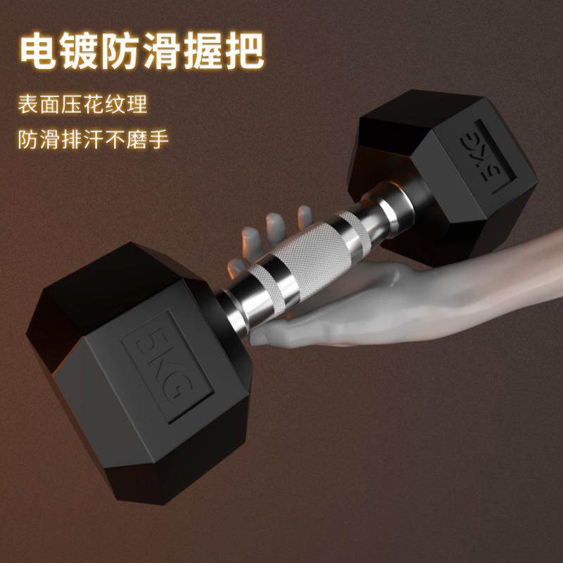 纯铁质六角哑铃男士健身房家用专业器材实心铸铁纯钢女电镀30公斤