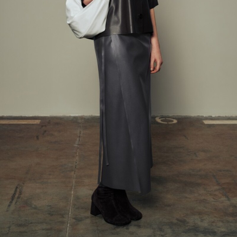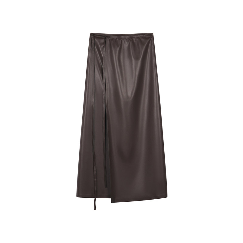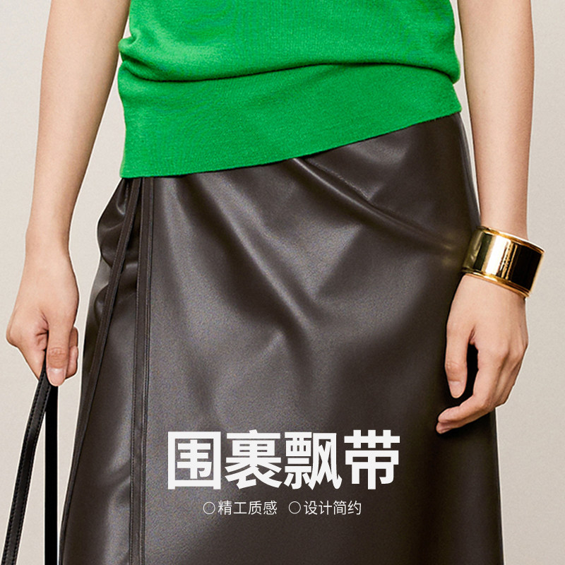 【精工系列】LESS春秋不对称下摆半身裙女直筒PU皮裙2O7D10600