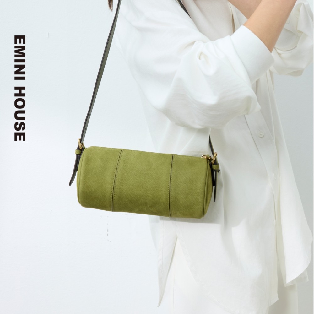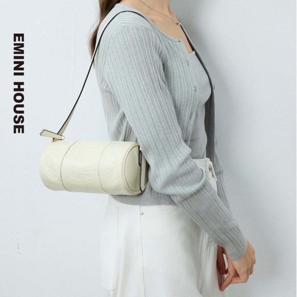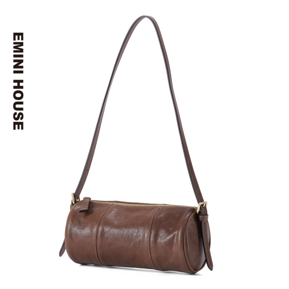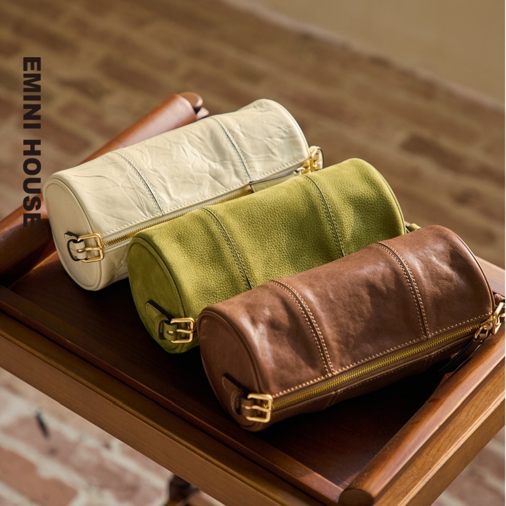 伊米妮真皮植鞣牛皮圆筒包简约复古小众高级感单肩斜挎头层牛皮包