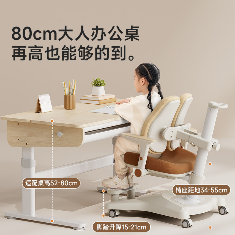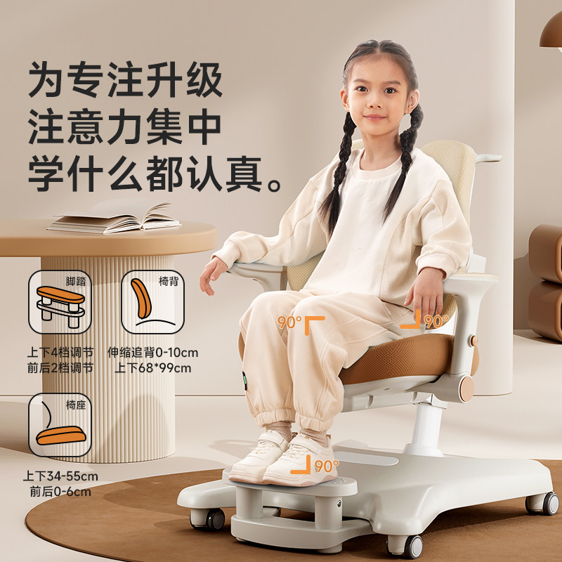 火虫设计儿童学习椅矫正坐姿可升降调节椅子小学生带脚踏写字座椅