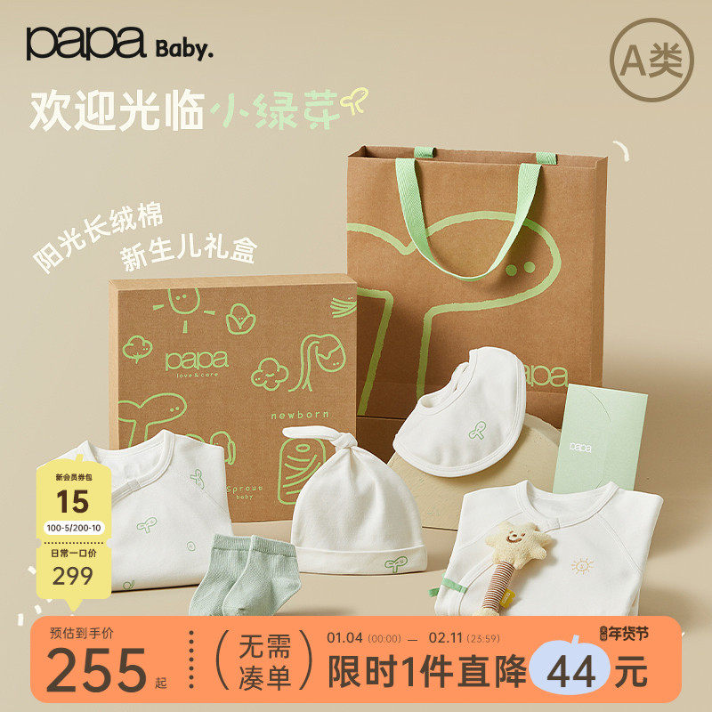 【小绿芽】papa爬爬四季婴儿礼盒新生儿初生礼满月礼物六件套送礼