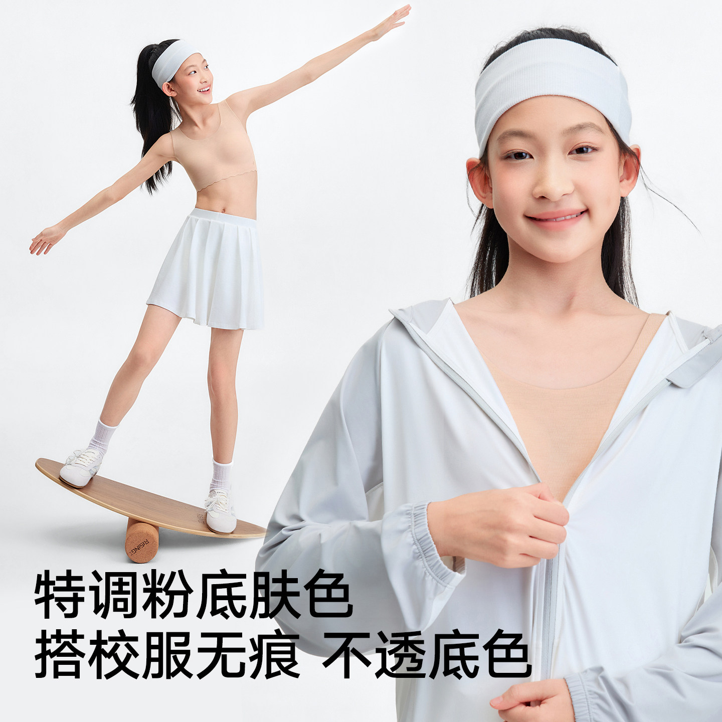 松山棉店二阶段蚕柔少女文胸弹力无痕粉底肤色不透色儿童发育内衣