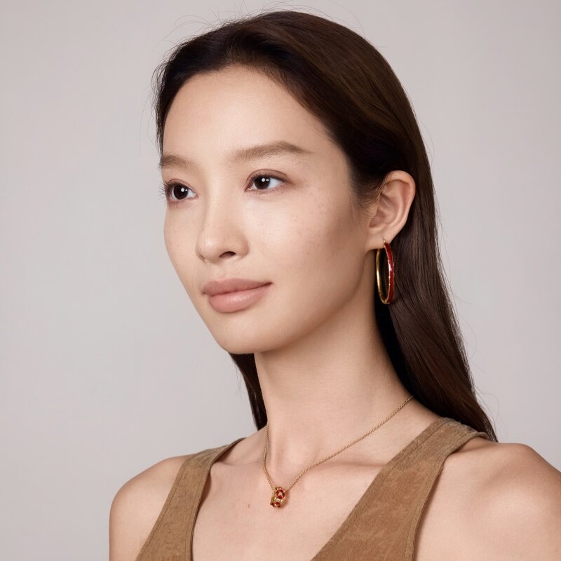 999纯银耳针耳环圈圈大圈秋冬红色耳饰女耳圈高级感轻奢素圈耳夹