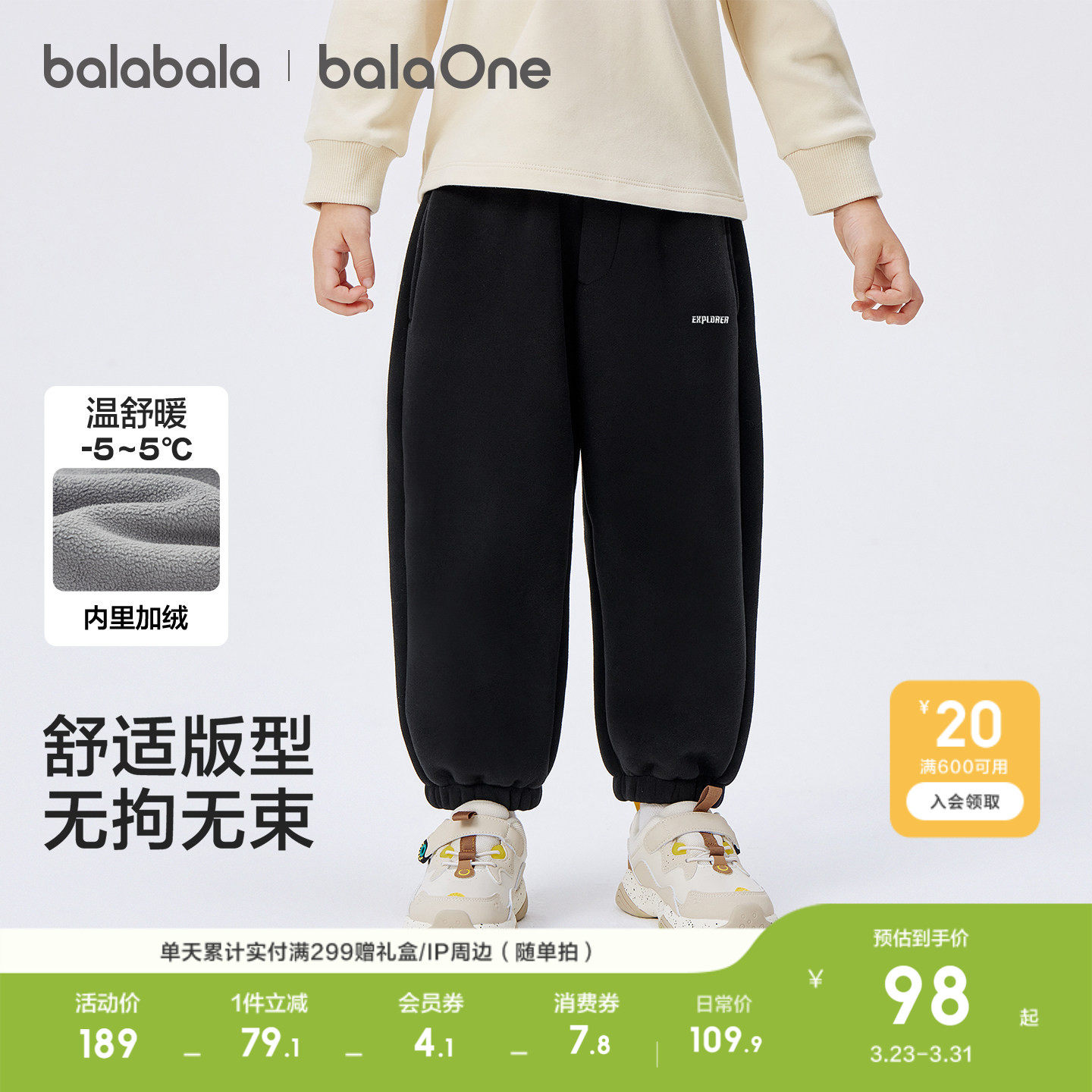 巴拉巴拉童装儿童裤子2026年秋冬装休闲男童女童加绒加厚宝宝长裤