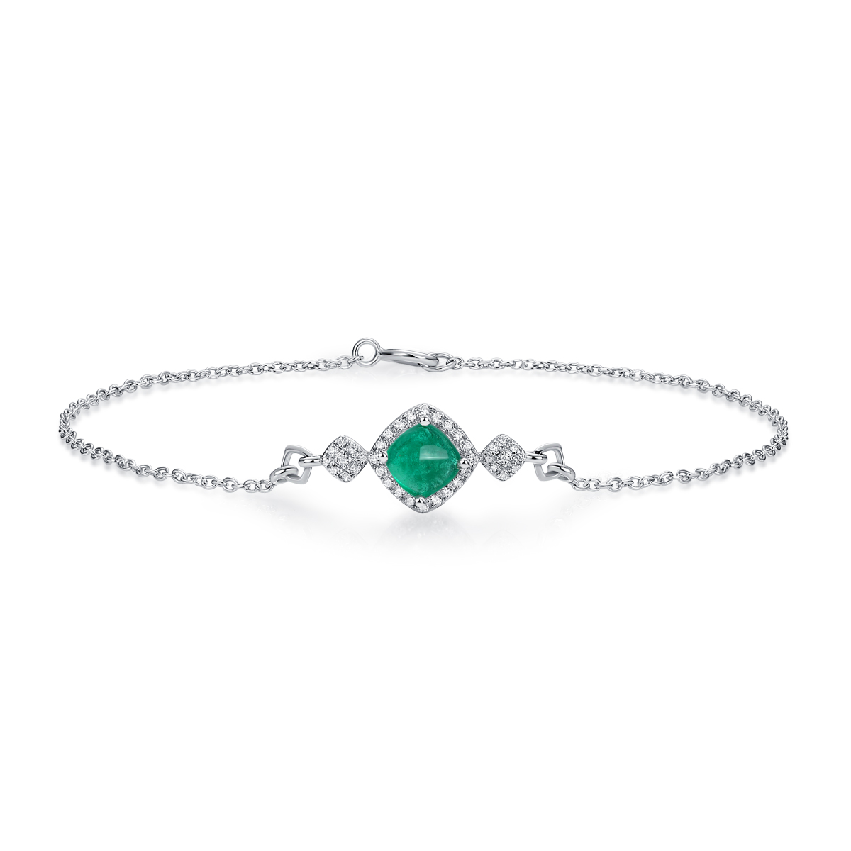 Yngel/蜜安琪天然赞比亚糖塔祖母绿手链天然钻石18k白金镶嵌