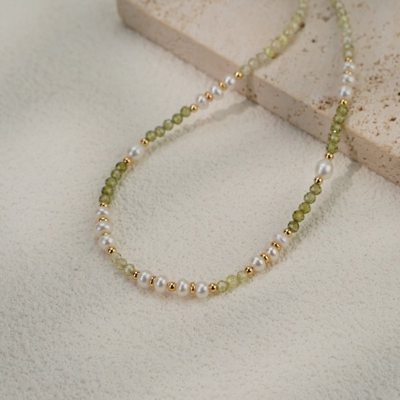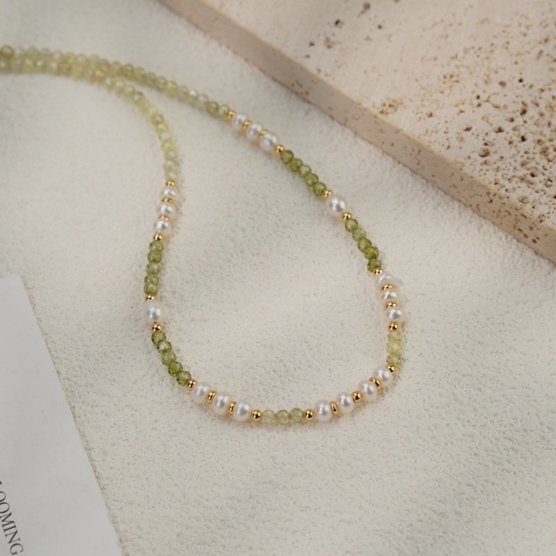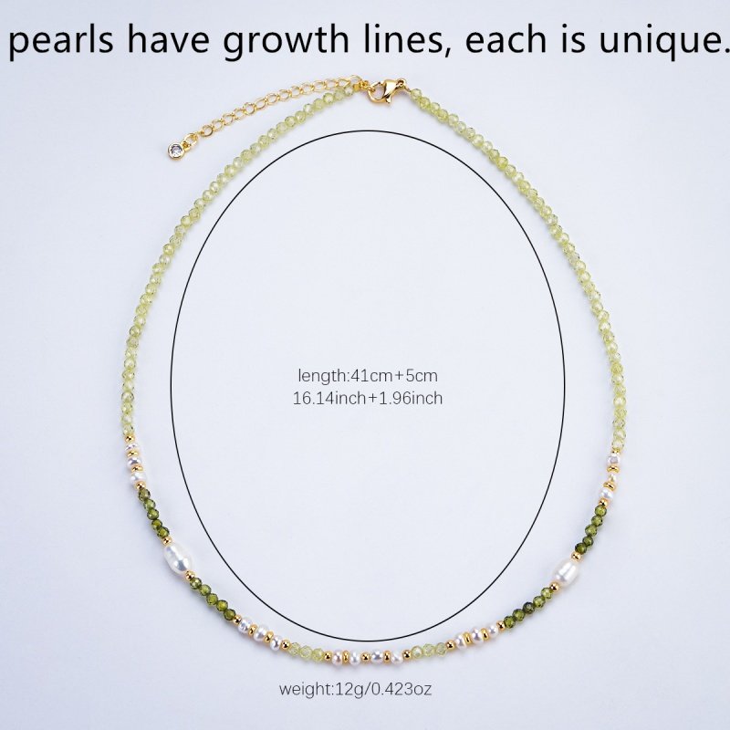 淡水珍珠串珠项链气质网红小清新绿色锆石森系锁骨链