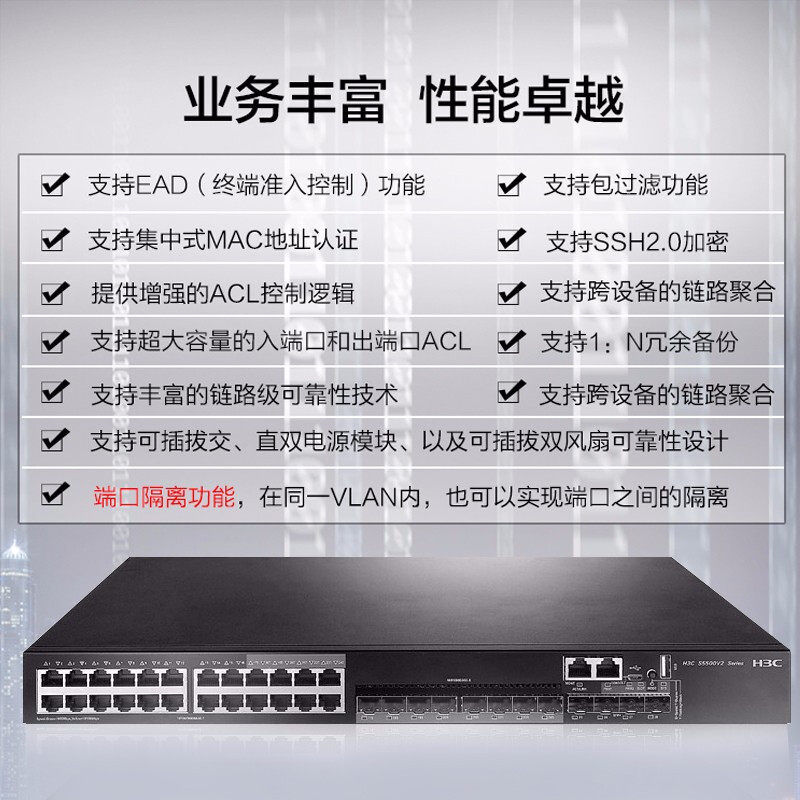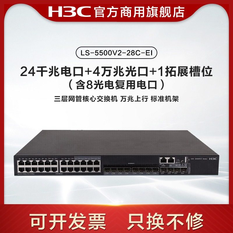 华三(H3C)S5500V2-28C-EI 24千兆电/4万兆光/1拓展槽位三层网管企业级网络核心交换机万兆上行S5500V2-34S-EI