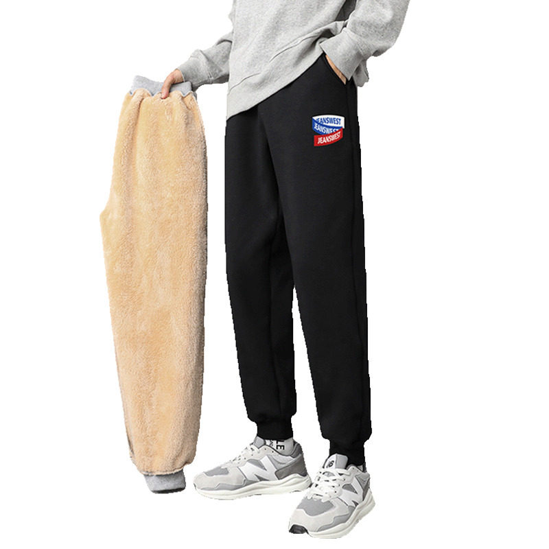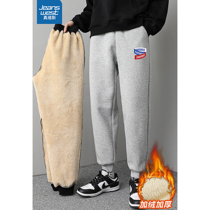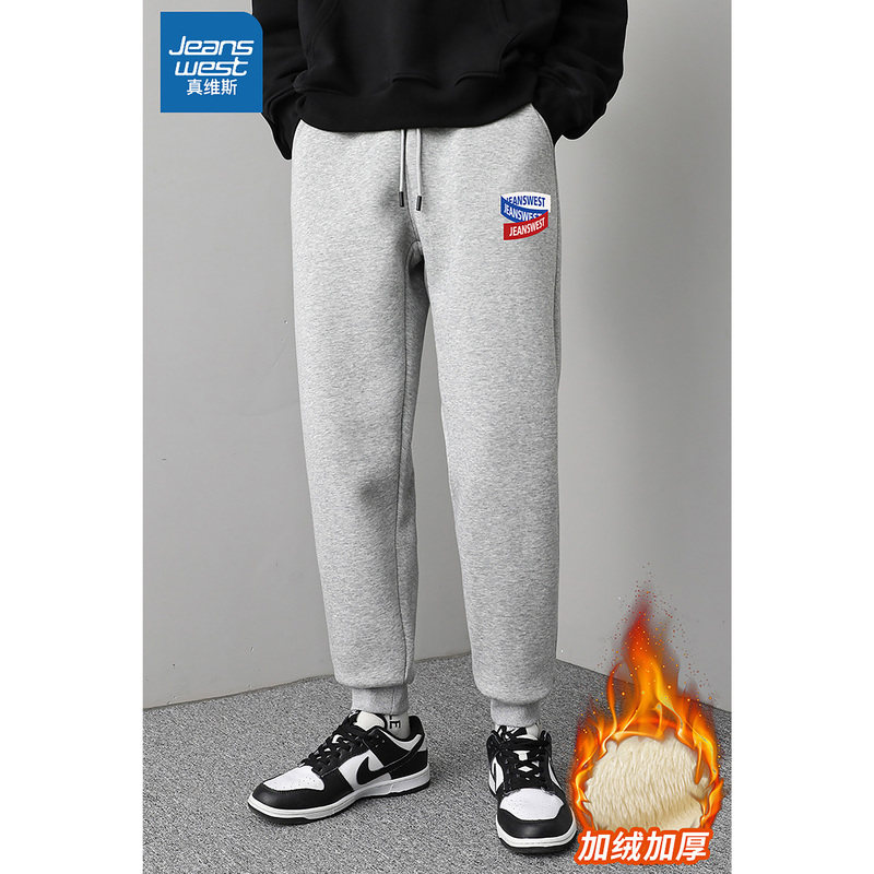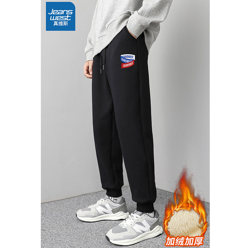EW真维斯男装加绒保暖卫裤 冬季 时尚束脚印花休闲长裤潮流男裤子